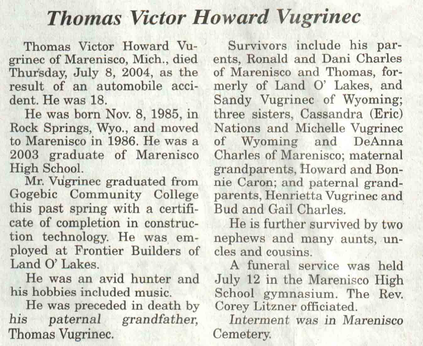 | Vugrinec | Thomas Victor Howard | 08 Nov 1985 | 08 Jul 2004 | V N-R | 14 Jul 2004 | 4A |