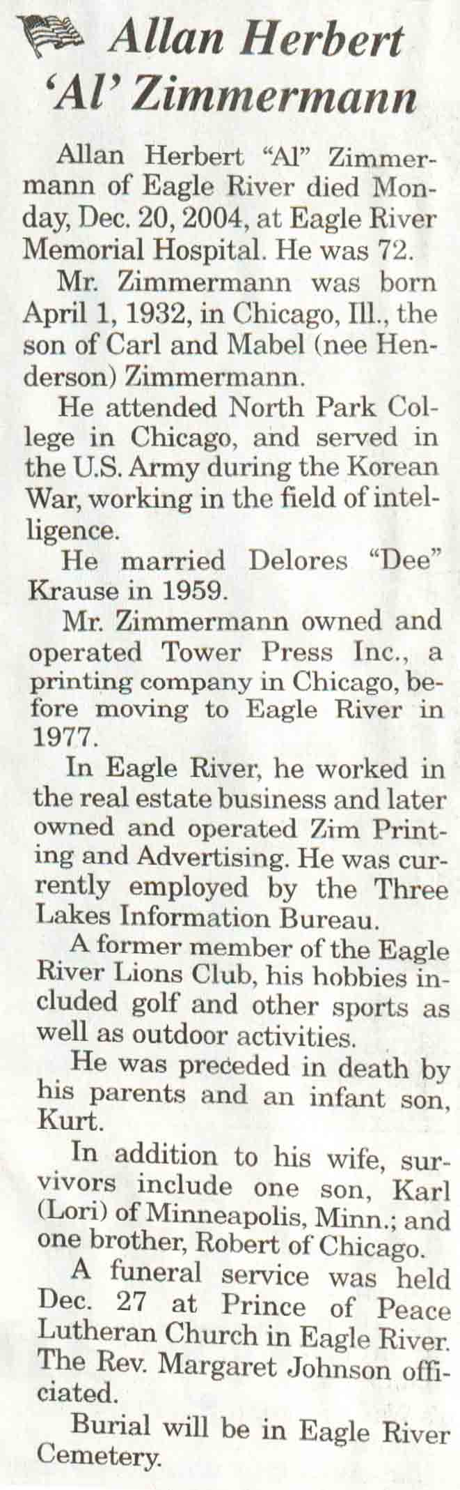 | Zimmerman | Allan Herbert 'Al' | 01 Apr 1932 | 20 Dec 2004 | V N-R | 29 Dec 2004 | 4A |