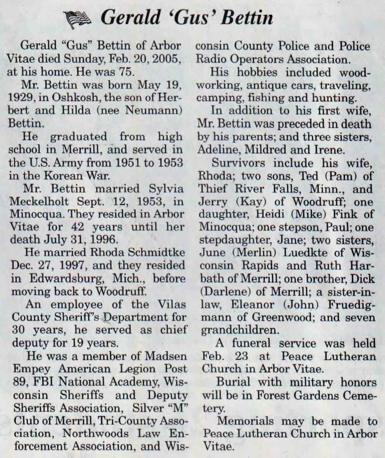 | Bettin | Gerald 'Gus' | 19 May 1929 | 20 Feb 2005 | V N-R | 02 Mar 2005 | 4A |
