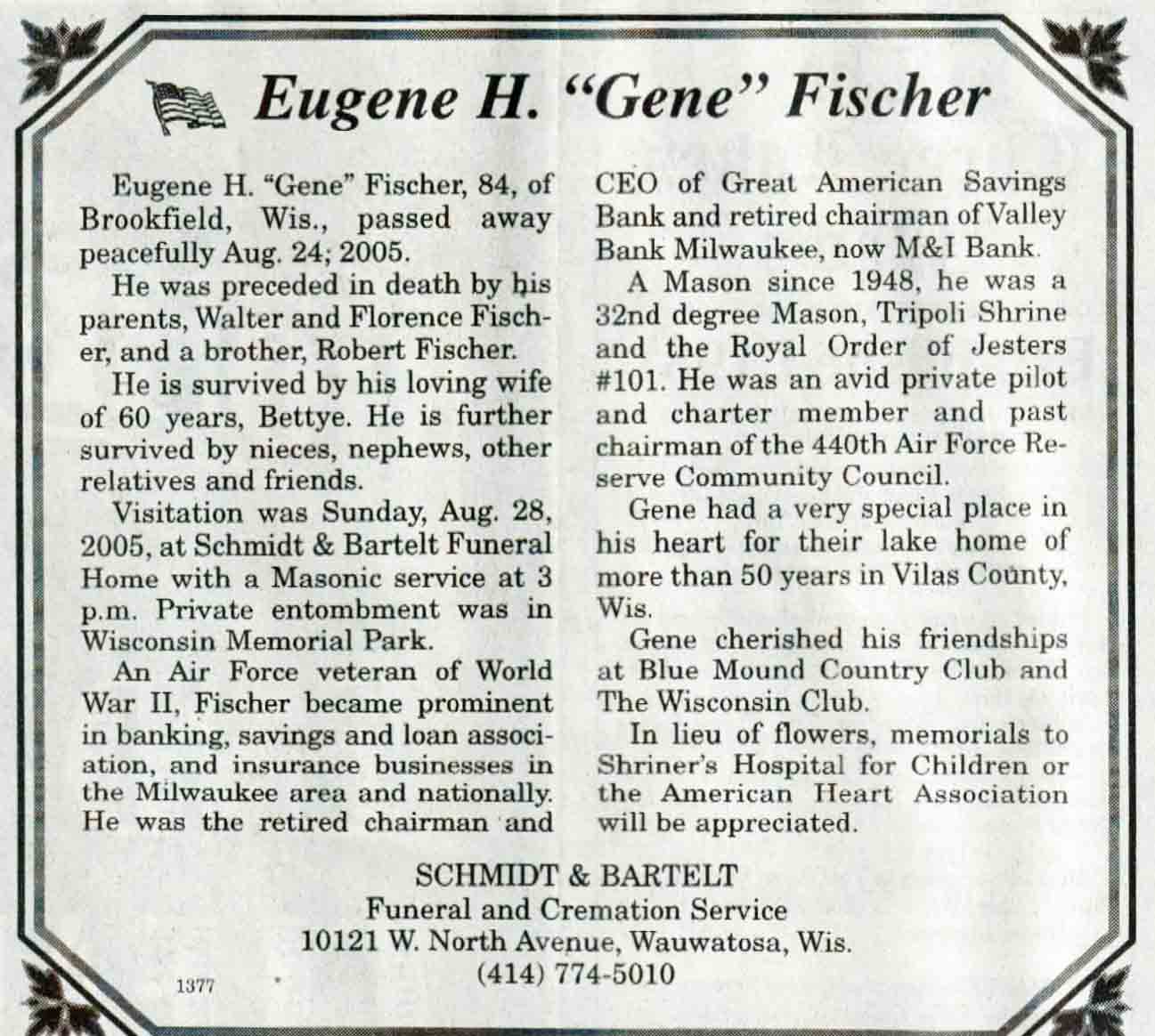 | Fisher | Eugene H 'Gene' | c 1921 | 24 Aug 2005 | V N-R | 31 Aug 2005 | 4A |