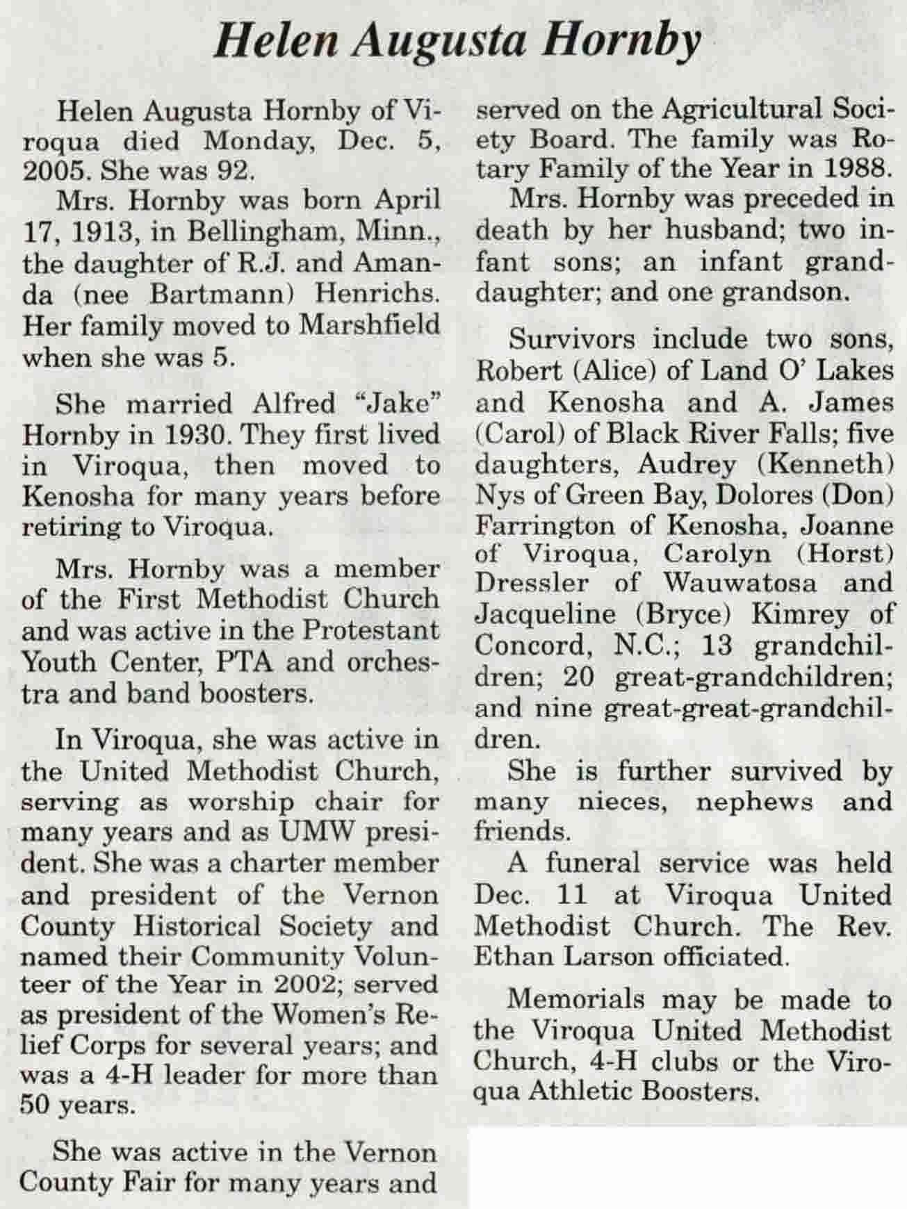 | Bishton | Jewel Marie (Weber) | 09 Aug 1920 | 12 Apr 2005 | V N-R | 20 Apr 2005 | 4A |