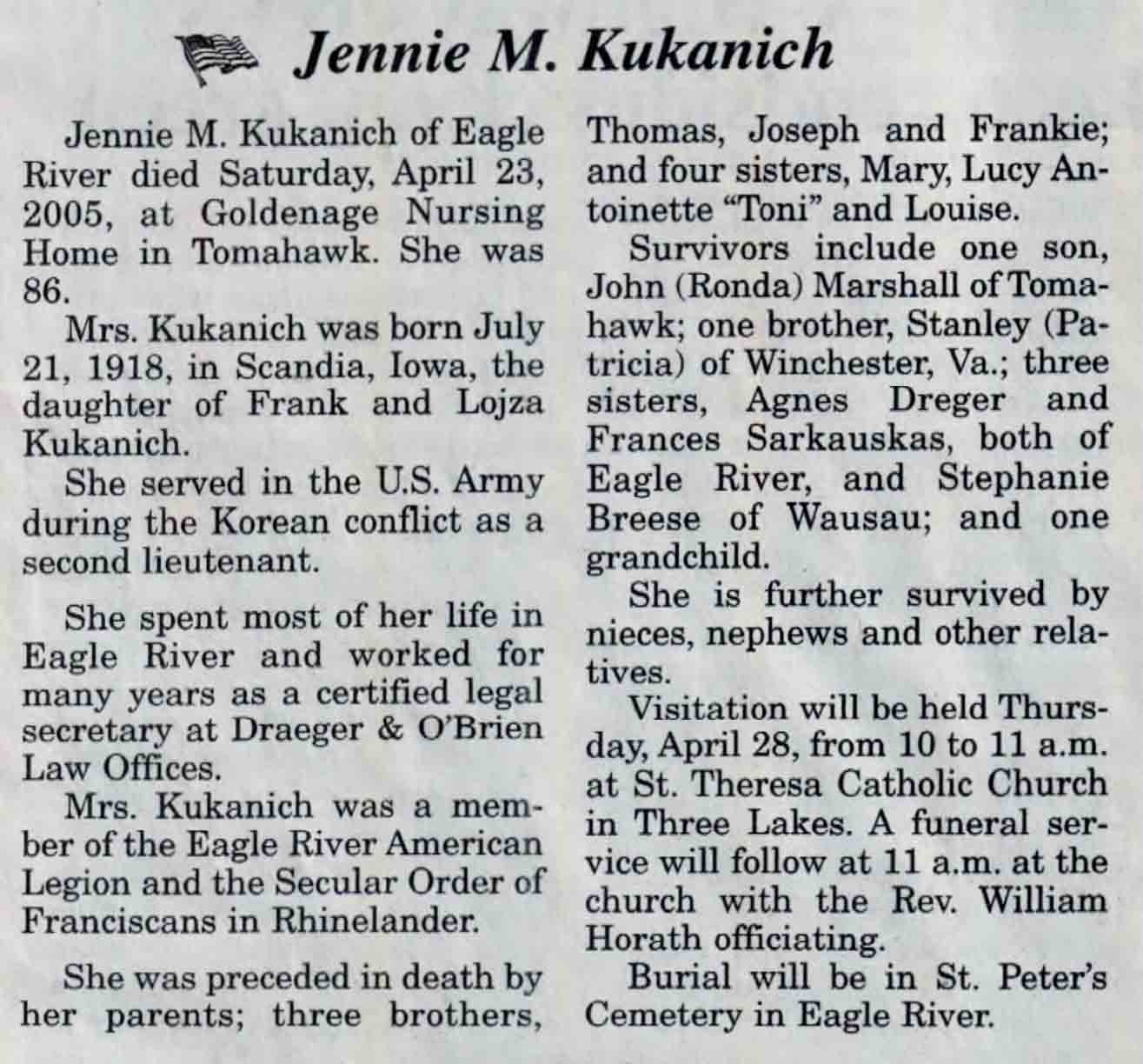 | Stefonik | Genevieve (Kliss) | 29 Sep 1919 | 20 Mar 2005 | V N-R | 23 Mar 2005 | 4A |