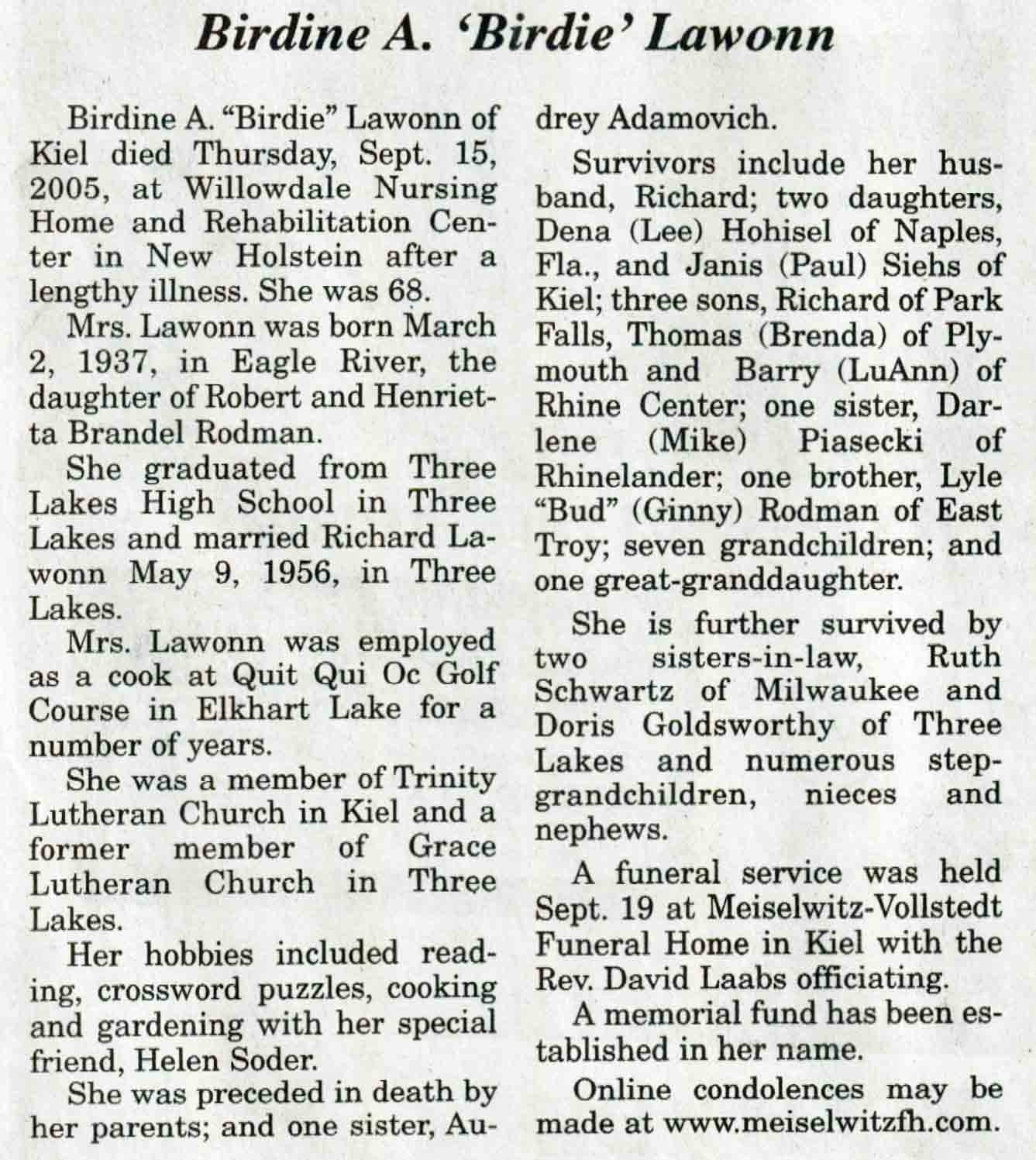 | Carlson | Nancy M (Richardson) | c 1935 | 02 Feb 2005 | V N-R | 09 Feb 2005 | 4A |