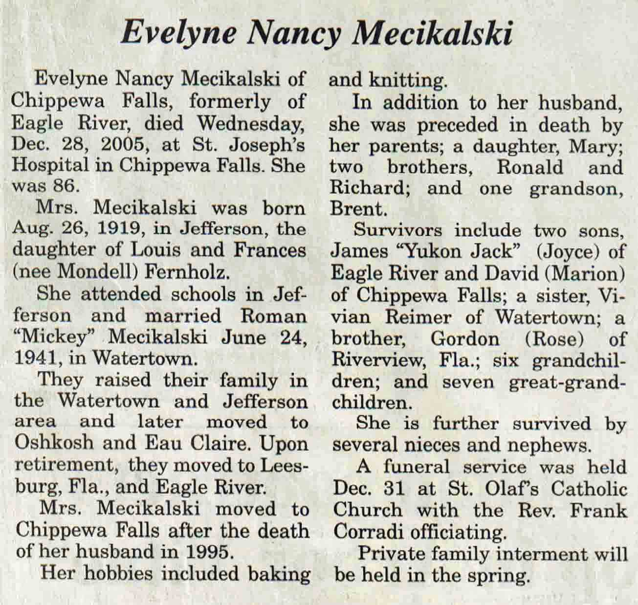 County, WI, Newspaper Obituaries