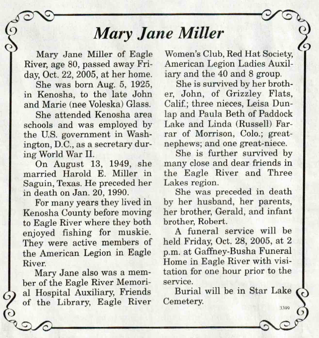 | Demboski | Bernette Veronica 'Bernie' (Ciske) | 30 Jul 1919 | 18 Jul 2005 | V N-R | 27 Jul 2005 | 4A |