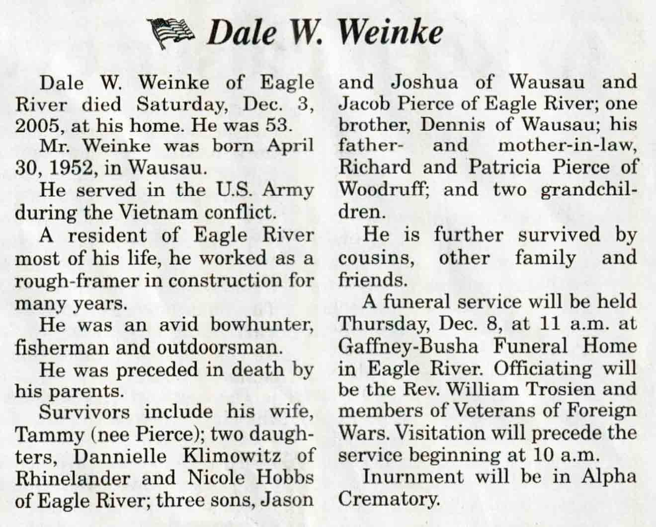 | Weinke | Dale W | 30 Apr 1952 | 03 Dec 2005 | V N-R | 07 Dec 2005 | 4A |