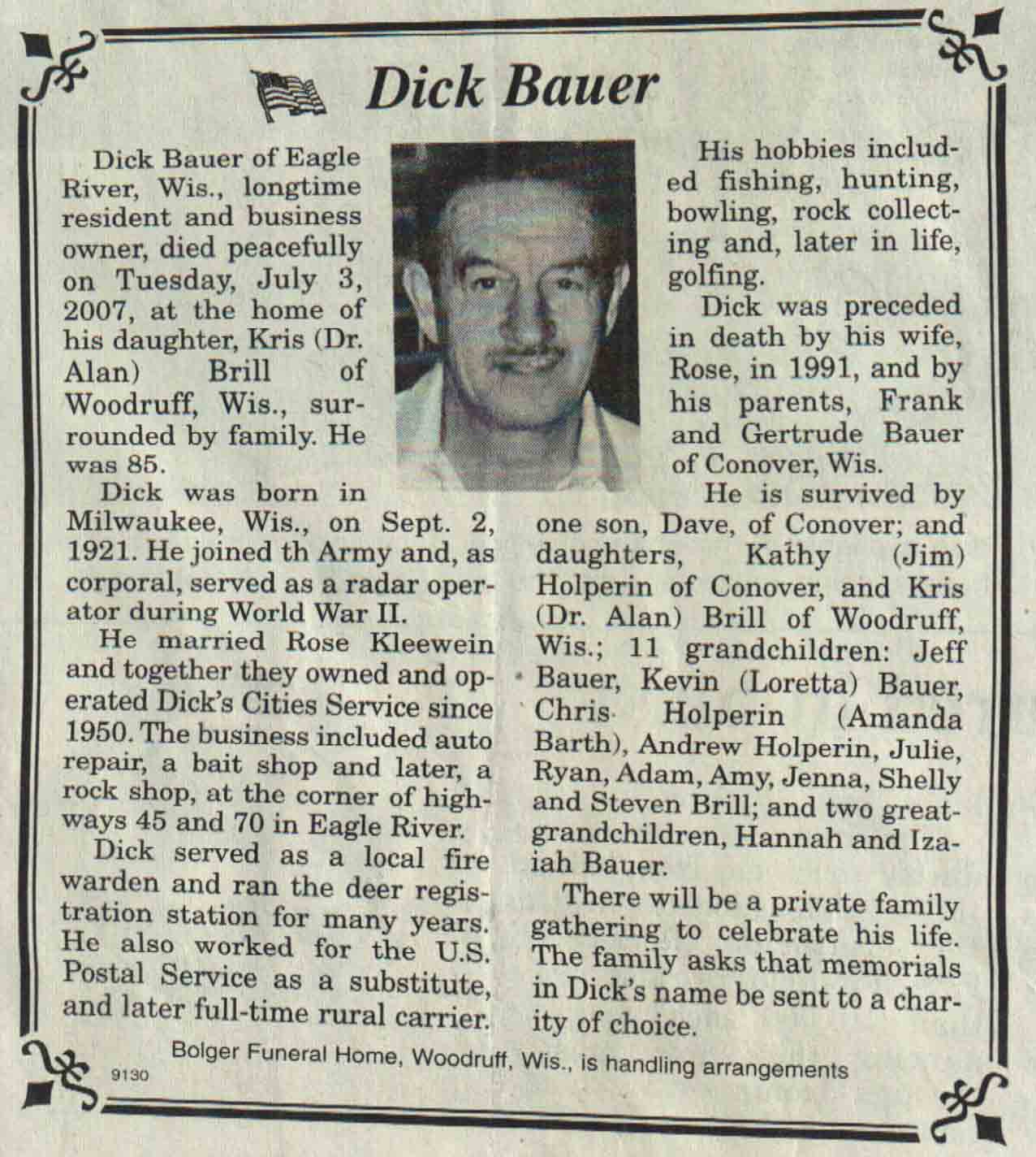 | Bauer | Dick | 02 Sep 1921 | 07 Jul 2007 | V N-R | 11 Jul 2007 | 4A |