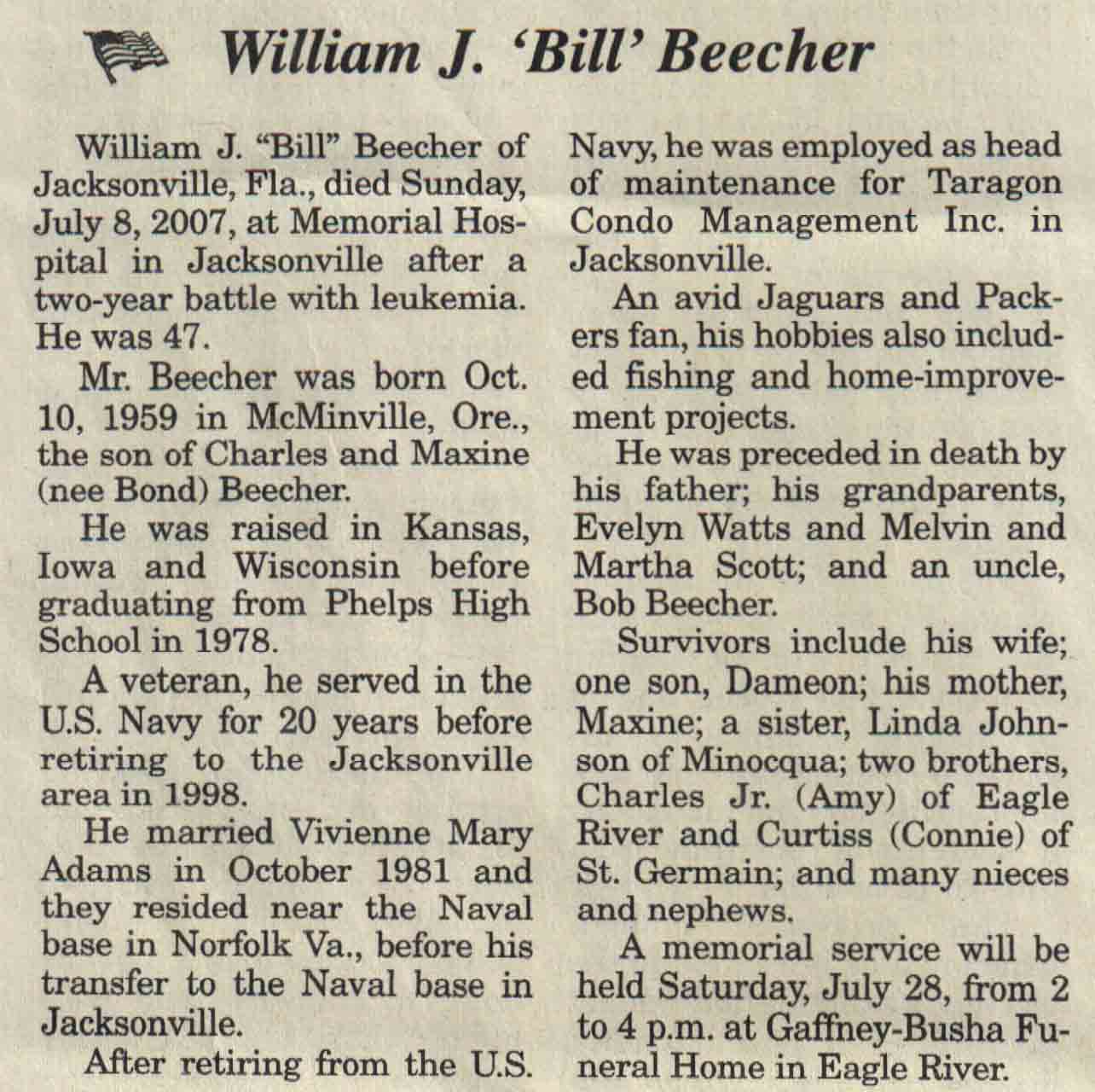 | Beecher | William J 'Bill' | 10 Oct 1959 | 08 Jul 2007 | V N-R | 18 Jul 2007 | 4A |