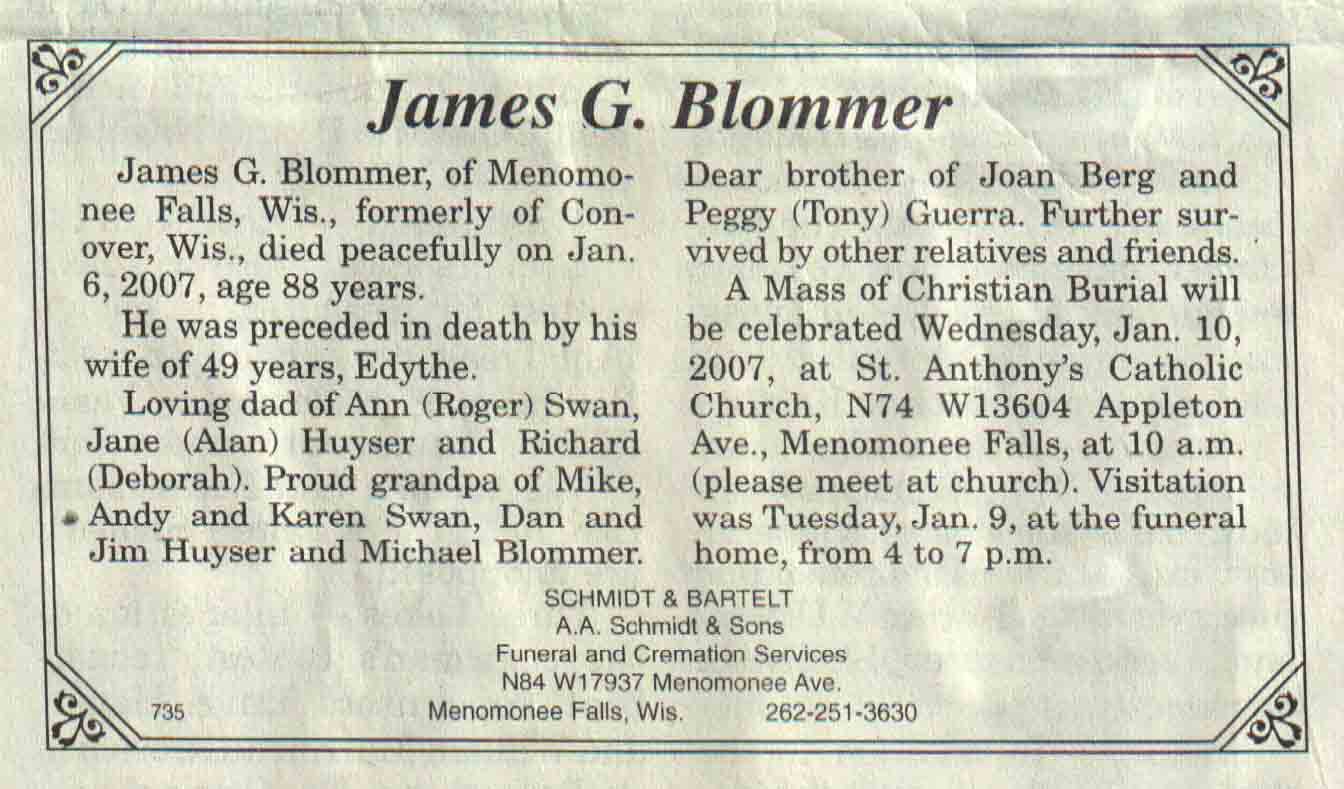 | Blommer | James G | c 1919 | 06 Jan 2007 | V N-R | 10 Jan 2007 | 4A |