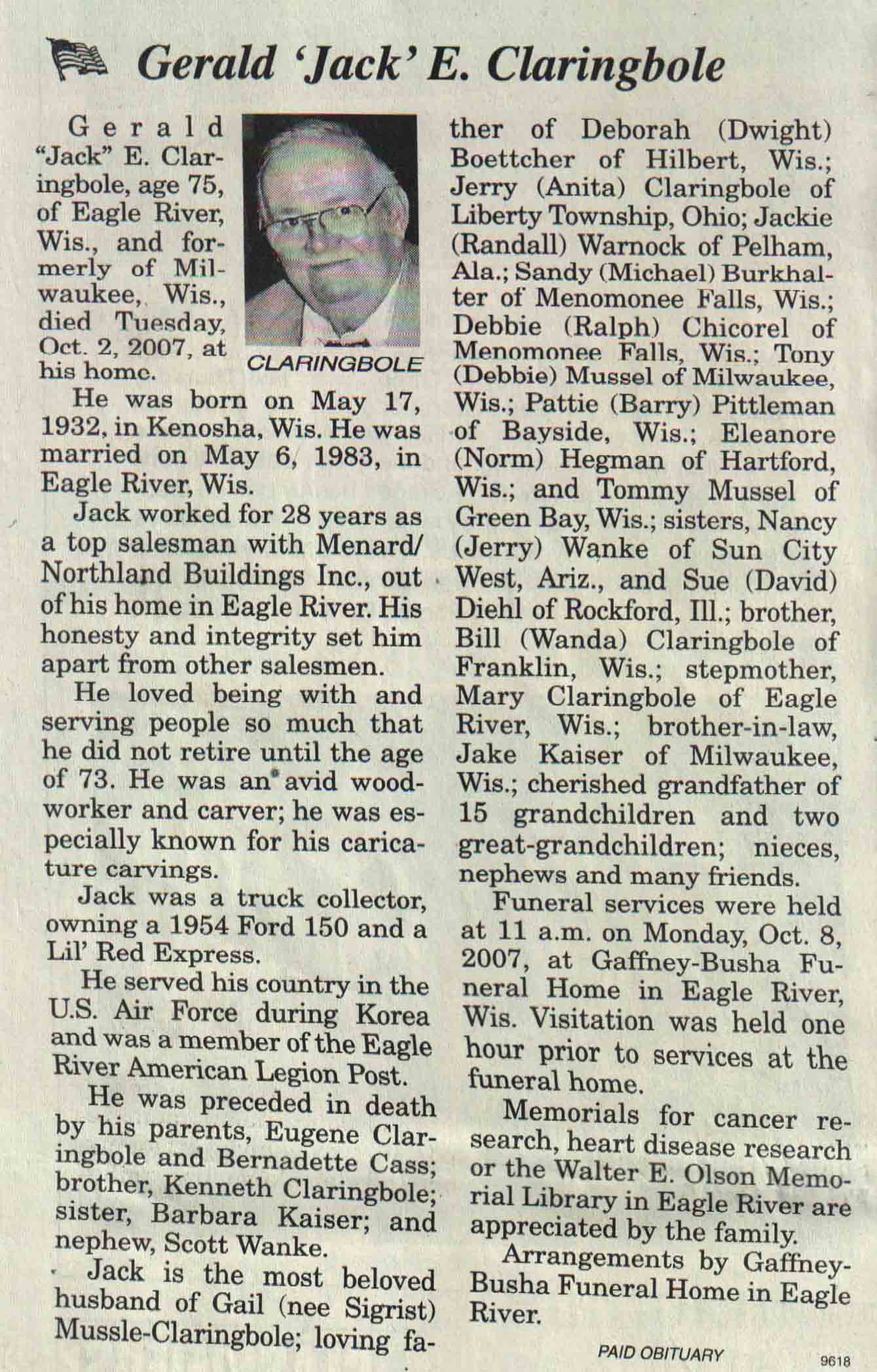 | Claringbole | Gerald E 'Jack' | 17 May 1932 | 02 Oct 2007 | V N-R | 10 Oct 2007 | 4A |