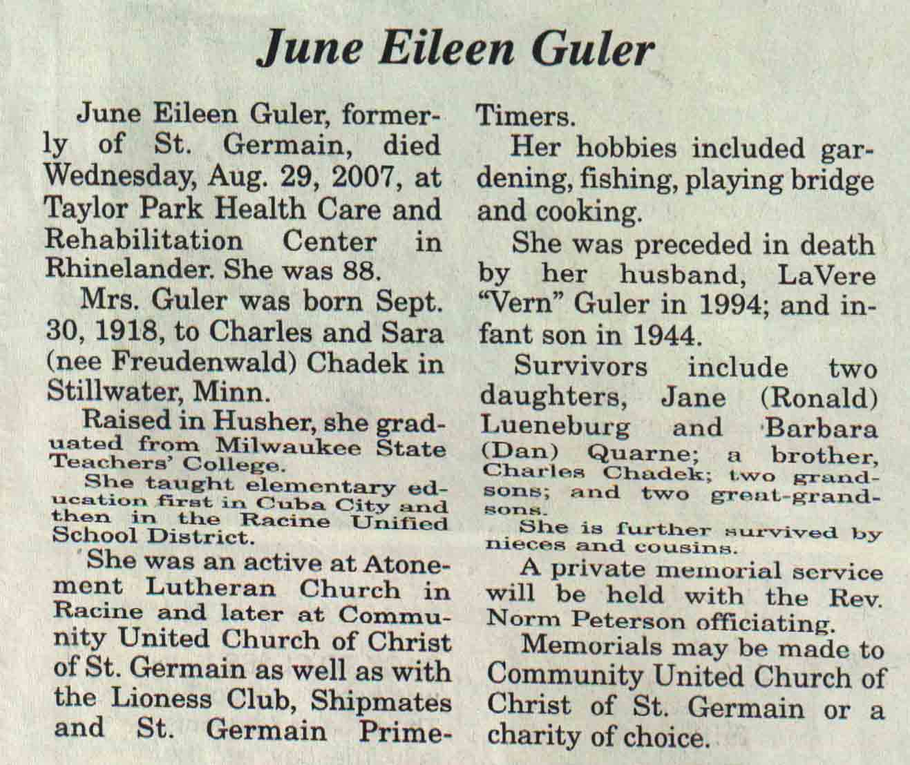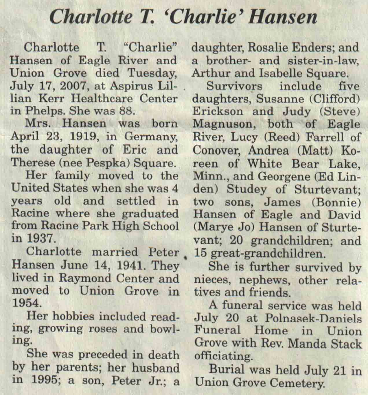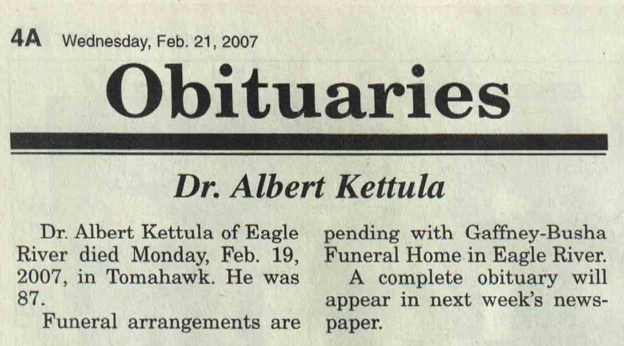 County, WI, Newspaper Obituaries
