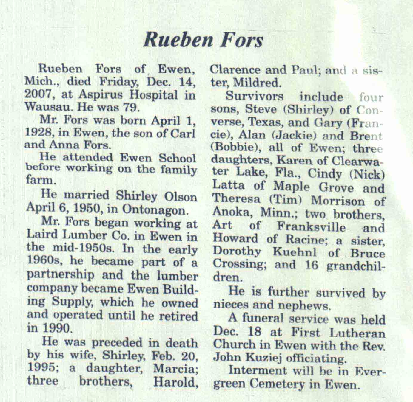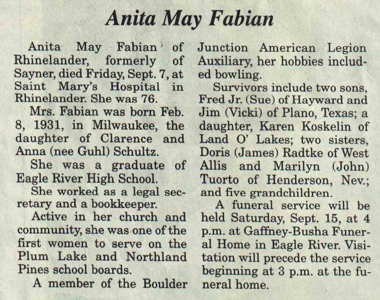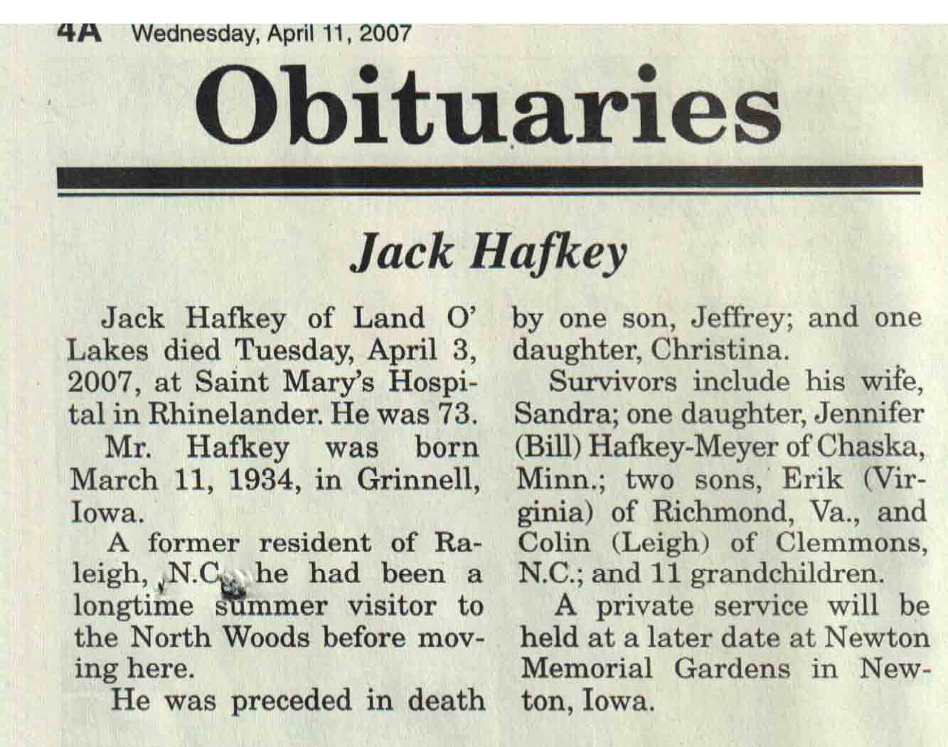 County, WI, Newspaper Obituaries