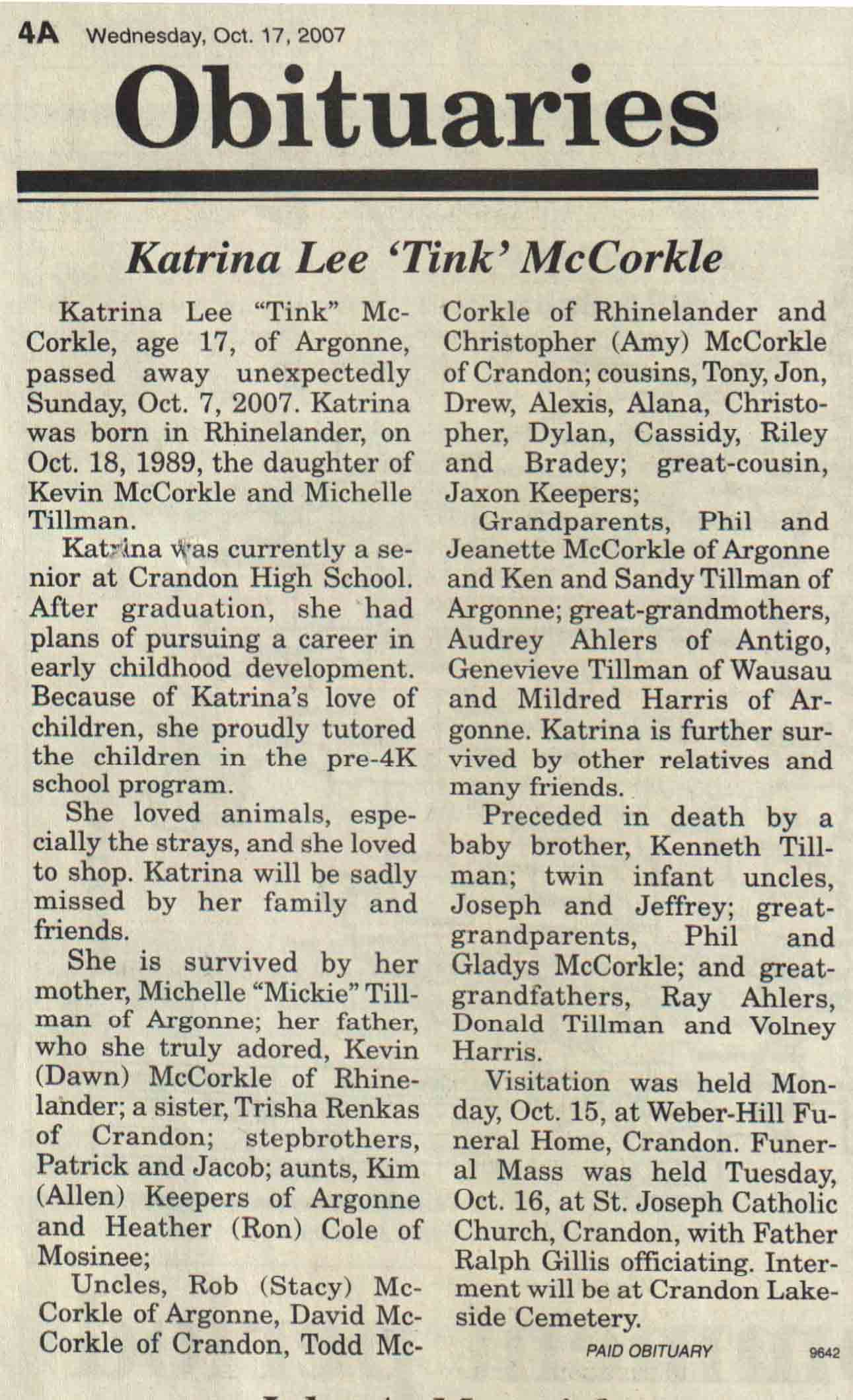 | Anderson | Teah Marie | 07 Dec 2007 | 07 Dec 2007 | V N-R | 19 Dec 2007 | 4A |