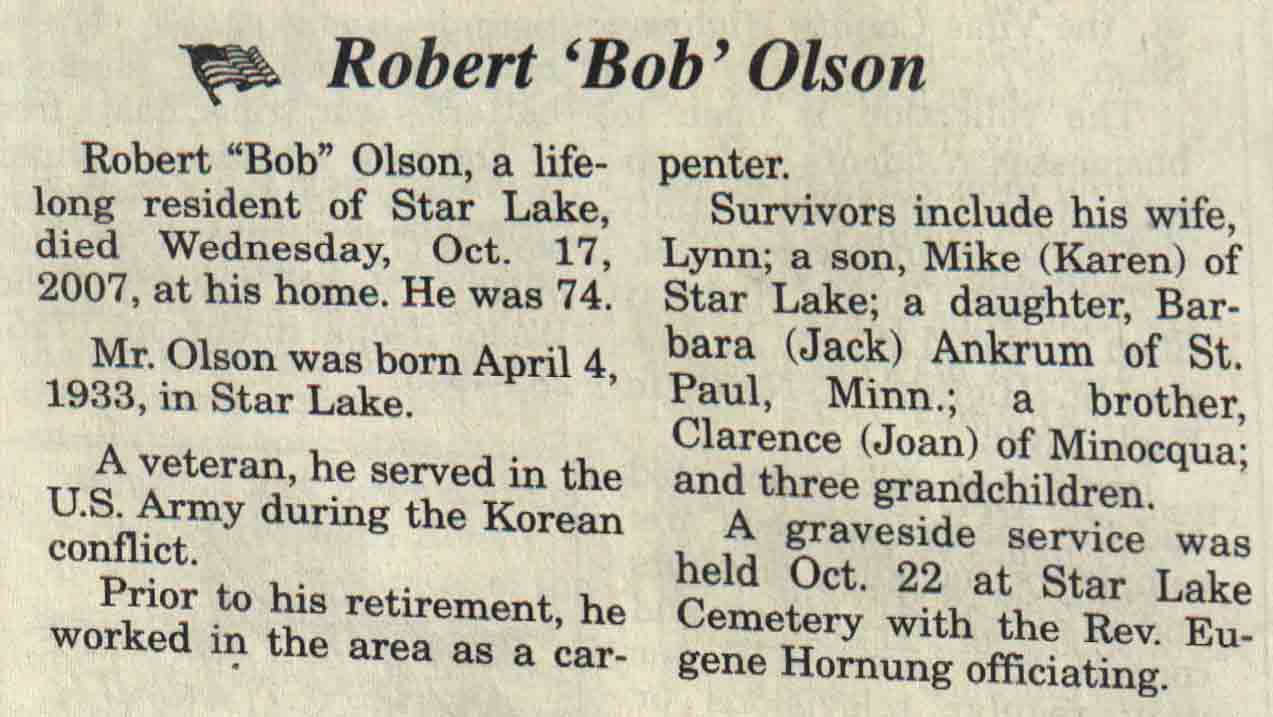 | Bartelt | Shirley A (Martinson) | 12 Sep 1956 | 27 Aug 2007 | V N-R | 05 Sep 2007 | 4A |