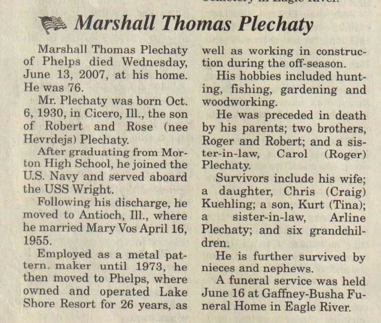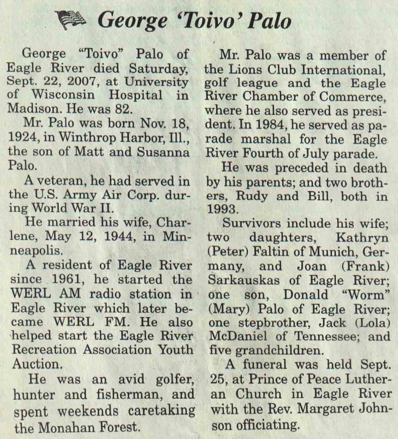 (Click on Hyperlink to view obituary)