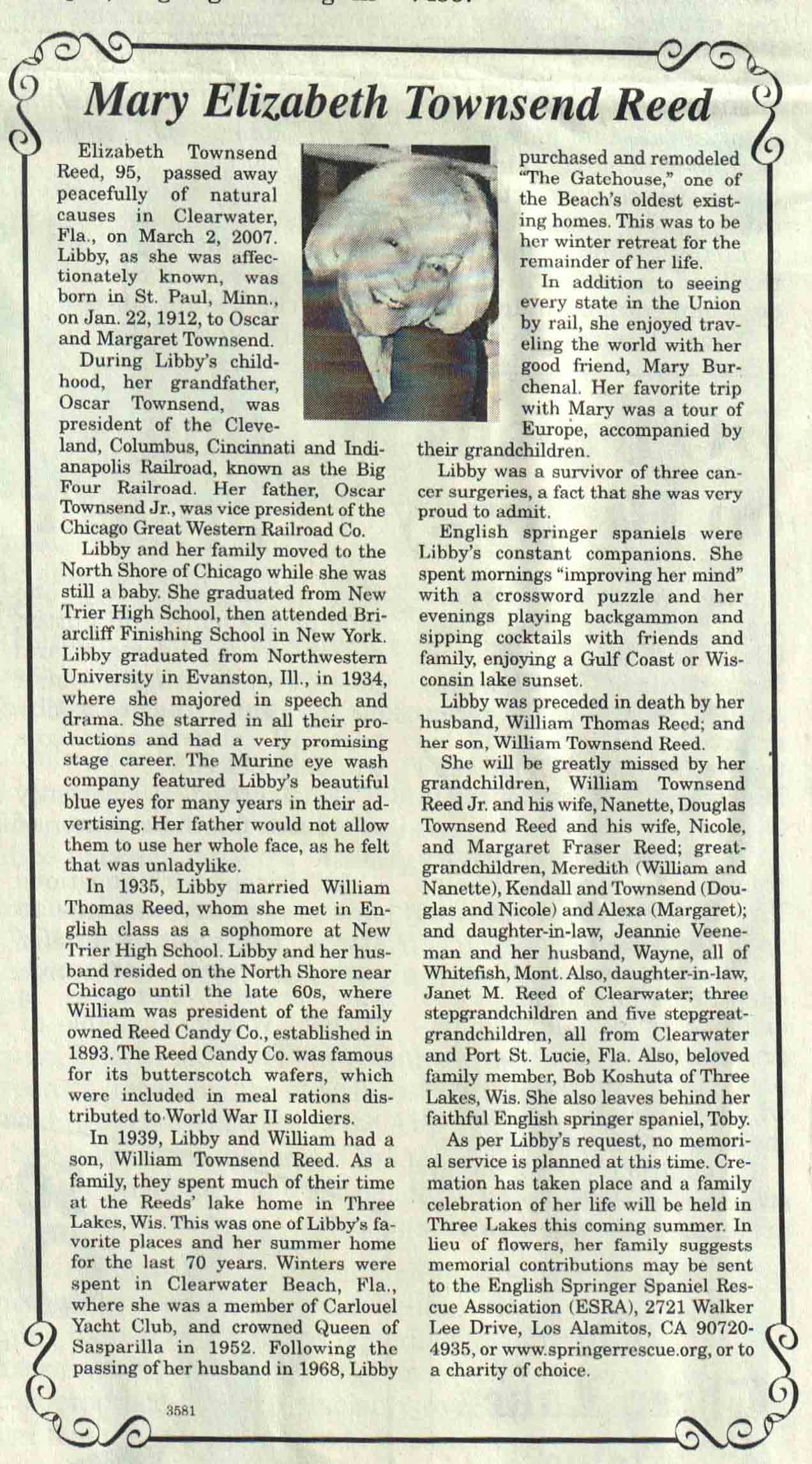 | Anderson | Clara M (Reed) | 27 Jul 1908 | 25 Oct 2007 | V N-R | 31 Oct 2007 | 4A |