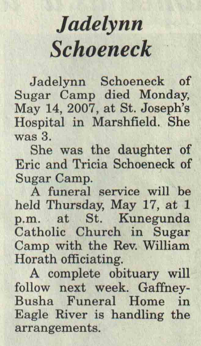 | Schoeneck | Jadelynn #1 | c 2004 | 14 May 2007 | V N-R | 16 May 2007 | 4A |