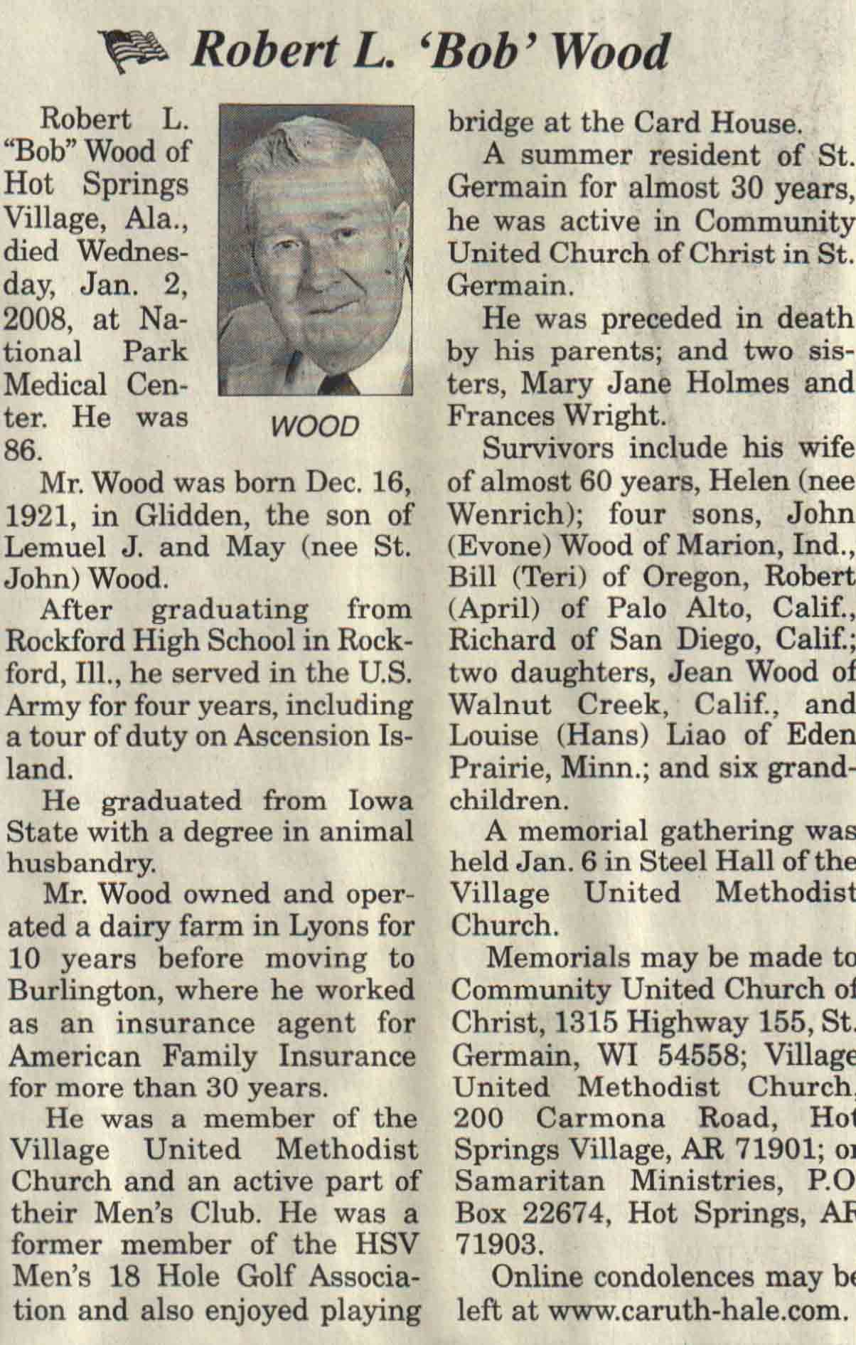 | Wood | Robert L 'Bob' | 16 Dec 1921 | 02 Jan 2007 | V N-R | 09 Jan 2008 | 4A |