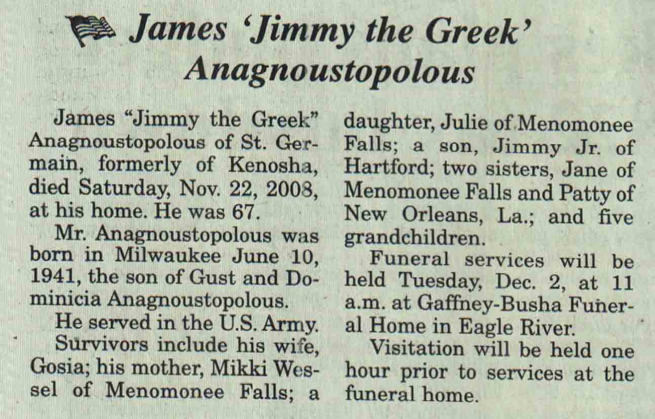 | Anagnoustopolous | James 'Jimmy the Greek' | 10 Jun 1941 | 22 Nov 2008 | V N-R | 26 Nov 2008 | 4A |