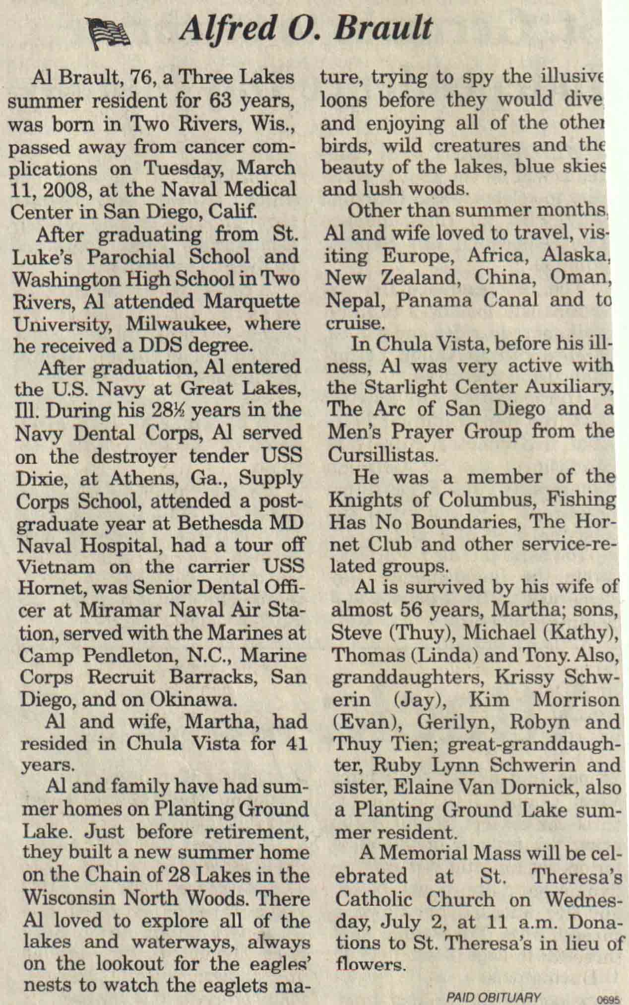 | Brault | Alfred O | c 1932 | 11 Mar 2008 | V N-R | 18 Jun 2008 | 4A |