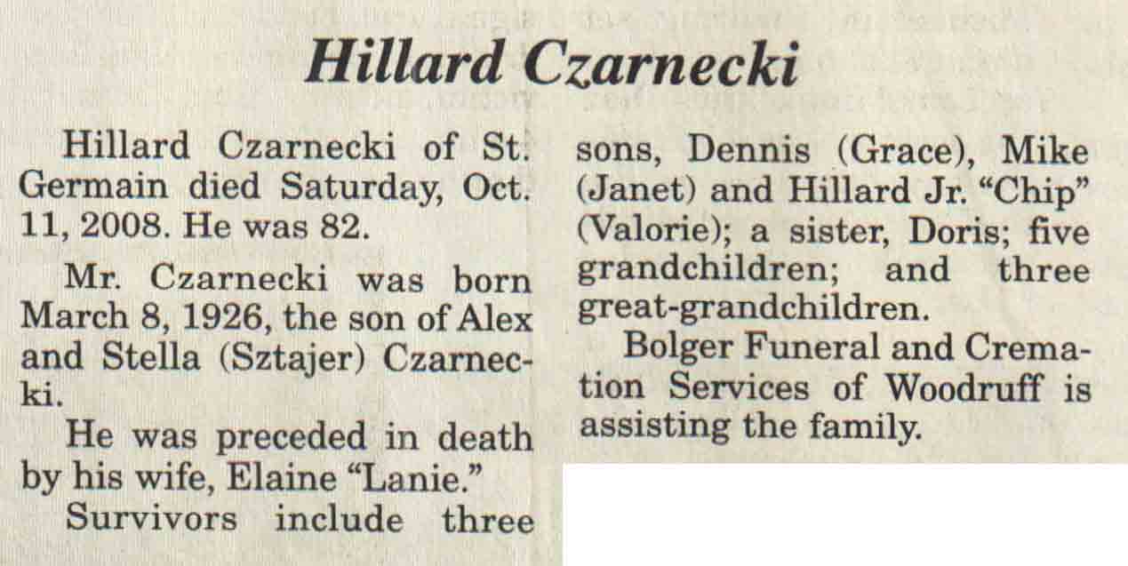 | Czarnecki | Hillard | 08 Mar 1926 | 11 Oct 2008 | V N-R | 15 Oct 2008 | 4A |