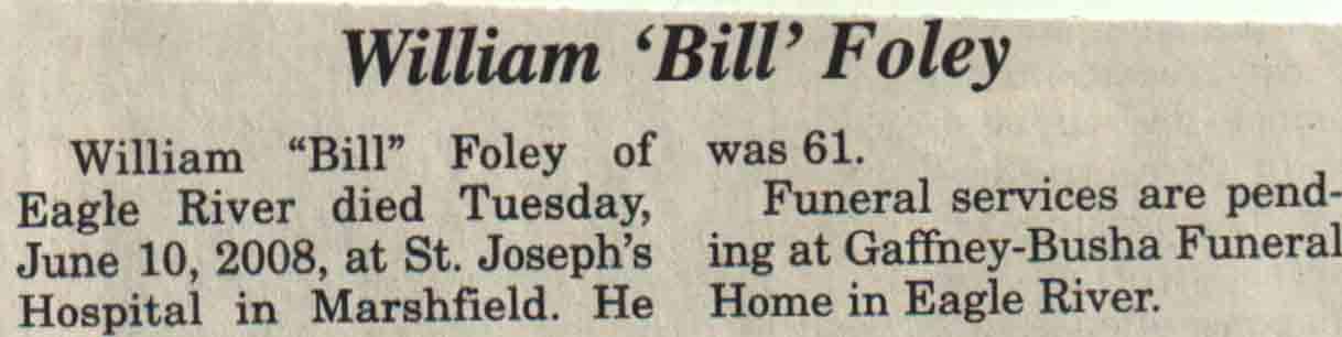| Foley | William 'Bill' #1 | c 1947 | 10 Jun 2008 | V N-R | 11 Jun 2008 | 4A |