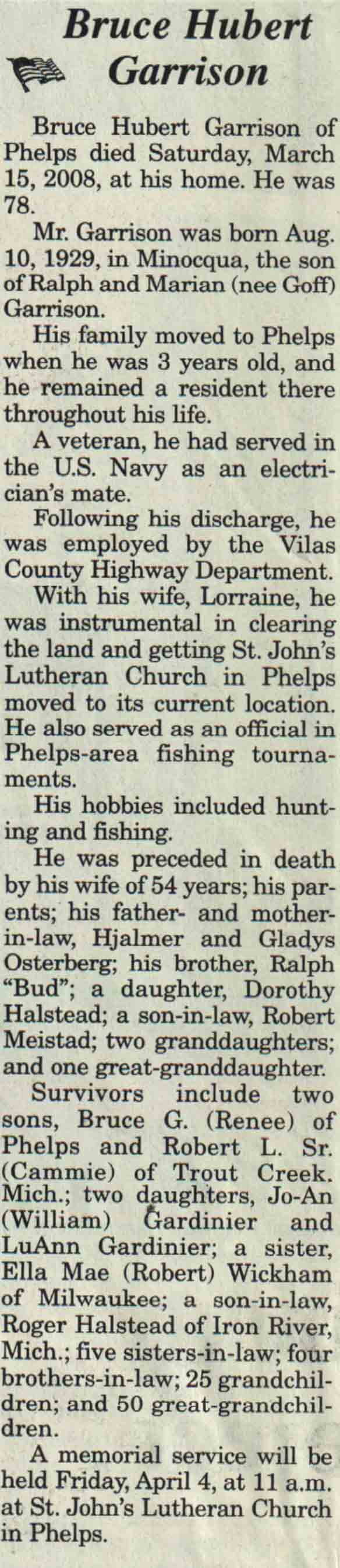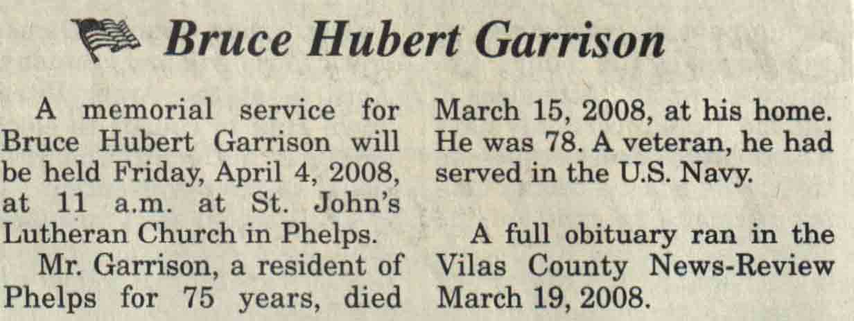 | Garrison | Bruce Hubert #1 | 10 Aug 1929 | 15 Mar 2008 | V N-R | 19 Mar 2008 | 4 |