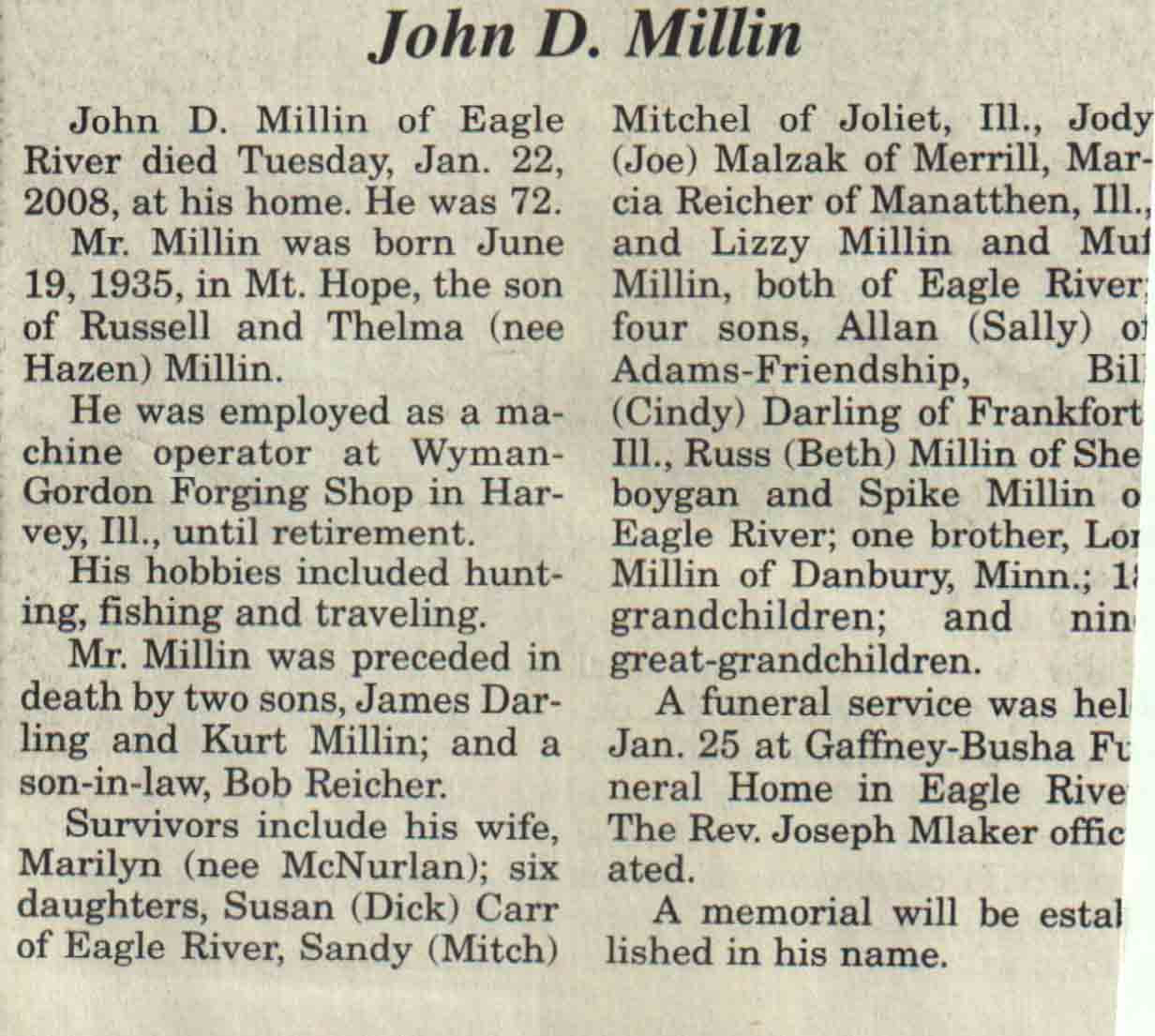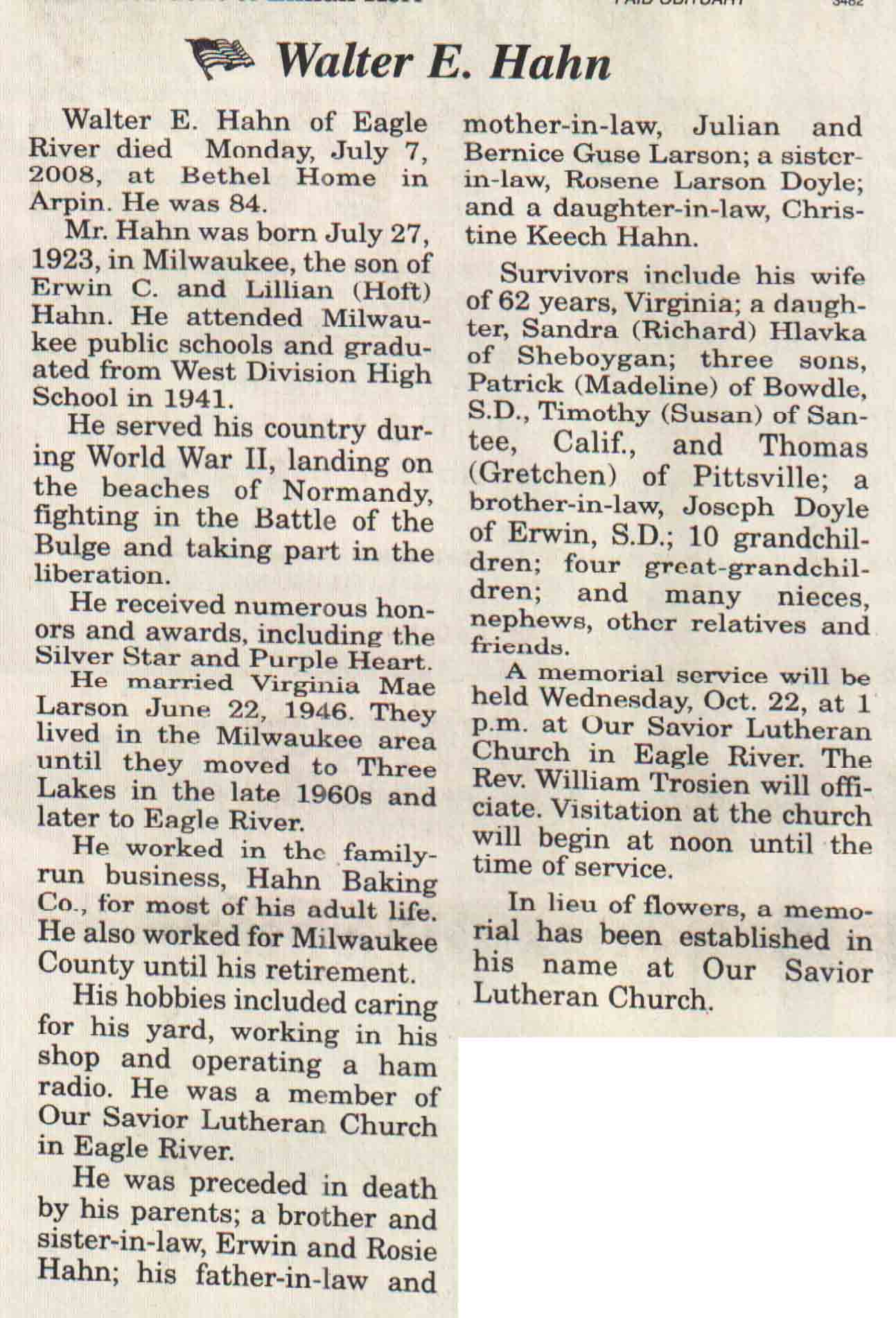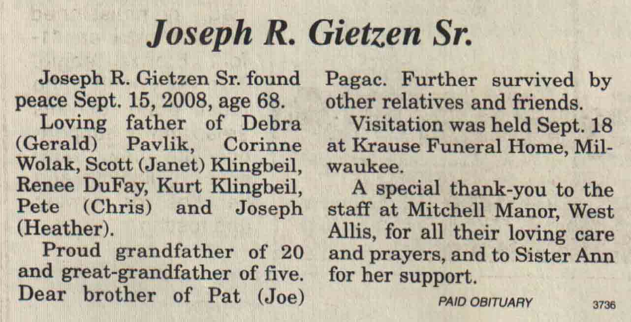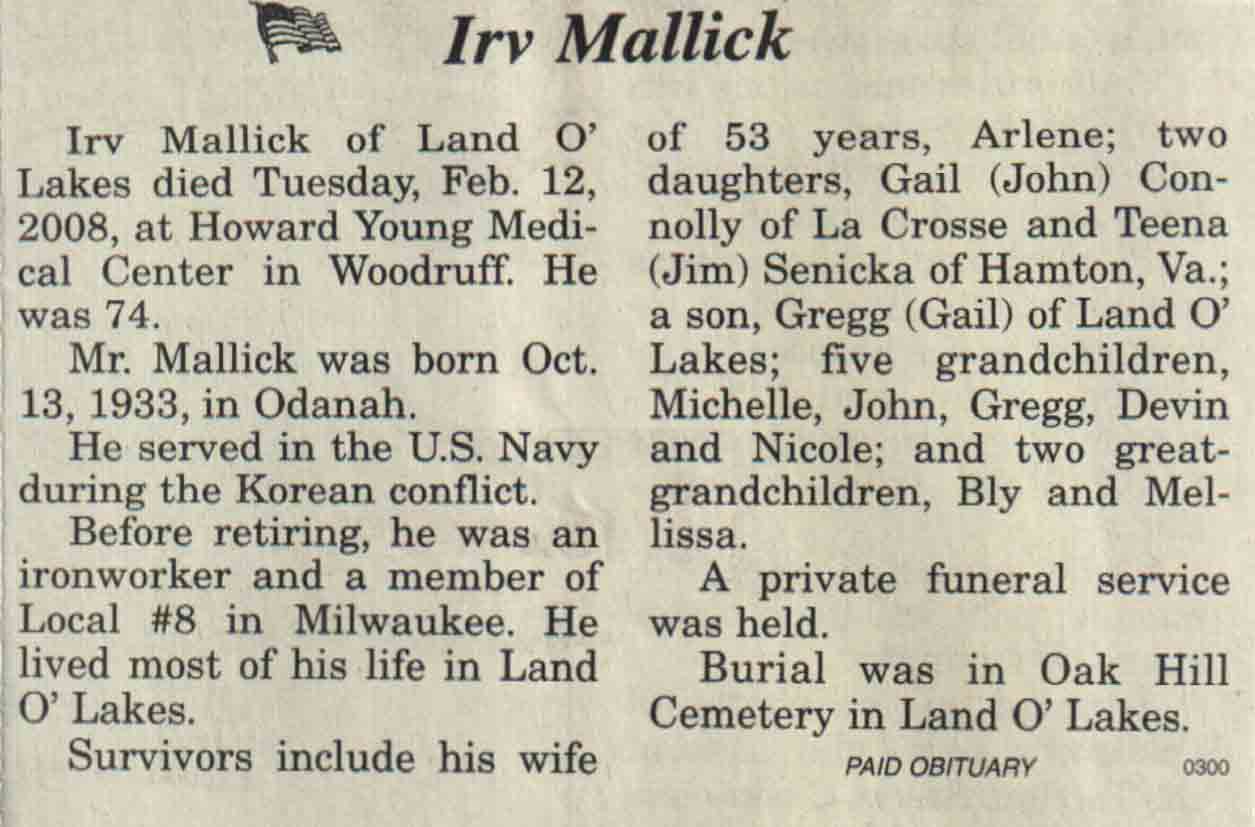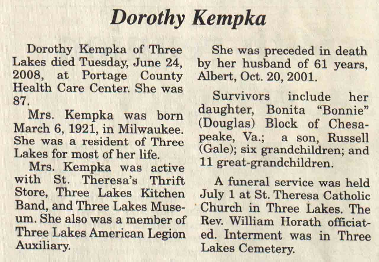 County, WI, Newspaper Obituaries