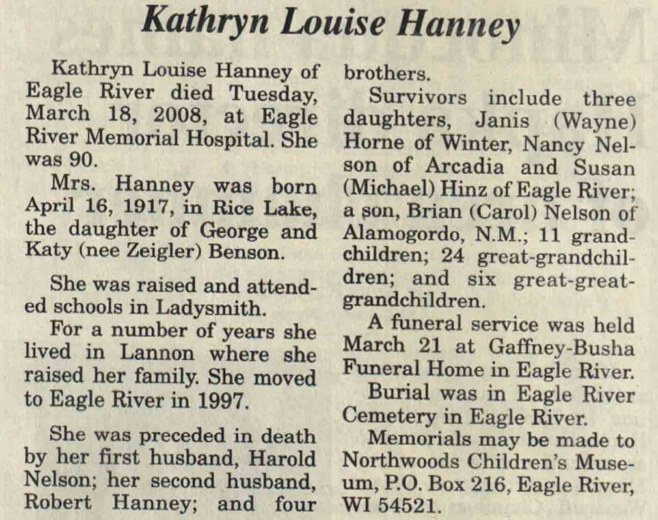 | Traeger | Martha E (Hanson) | 02 Feb 1919 | 24 Feb 2008 | V N-R | 05 Mar 2008 | 4A |