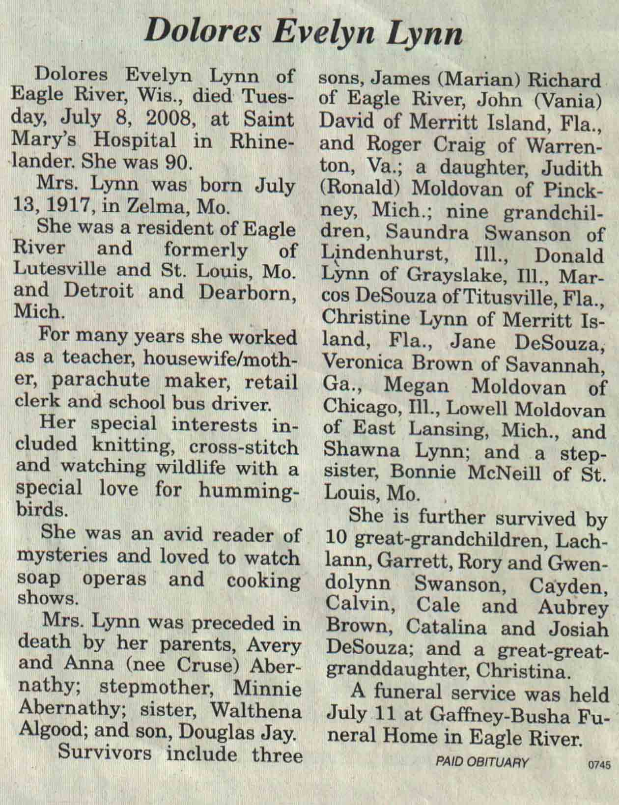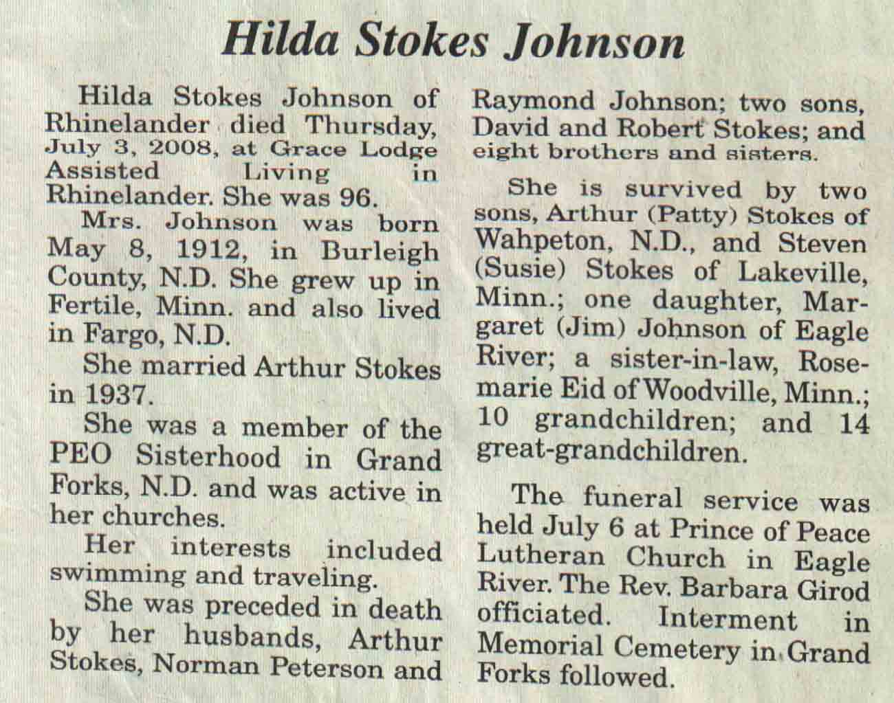 | Ayers | Evelyn M (Swanson) | 13 Dec 1914 | 12 Jul 2008 | V N-R | 16 Jul 2008 | 4A |