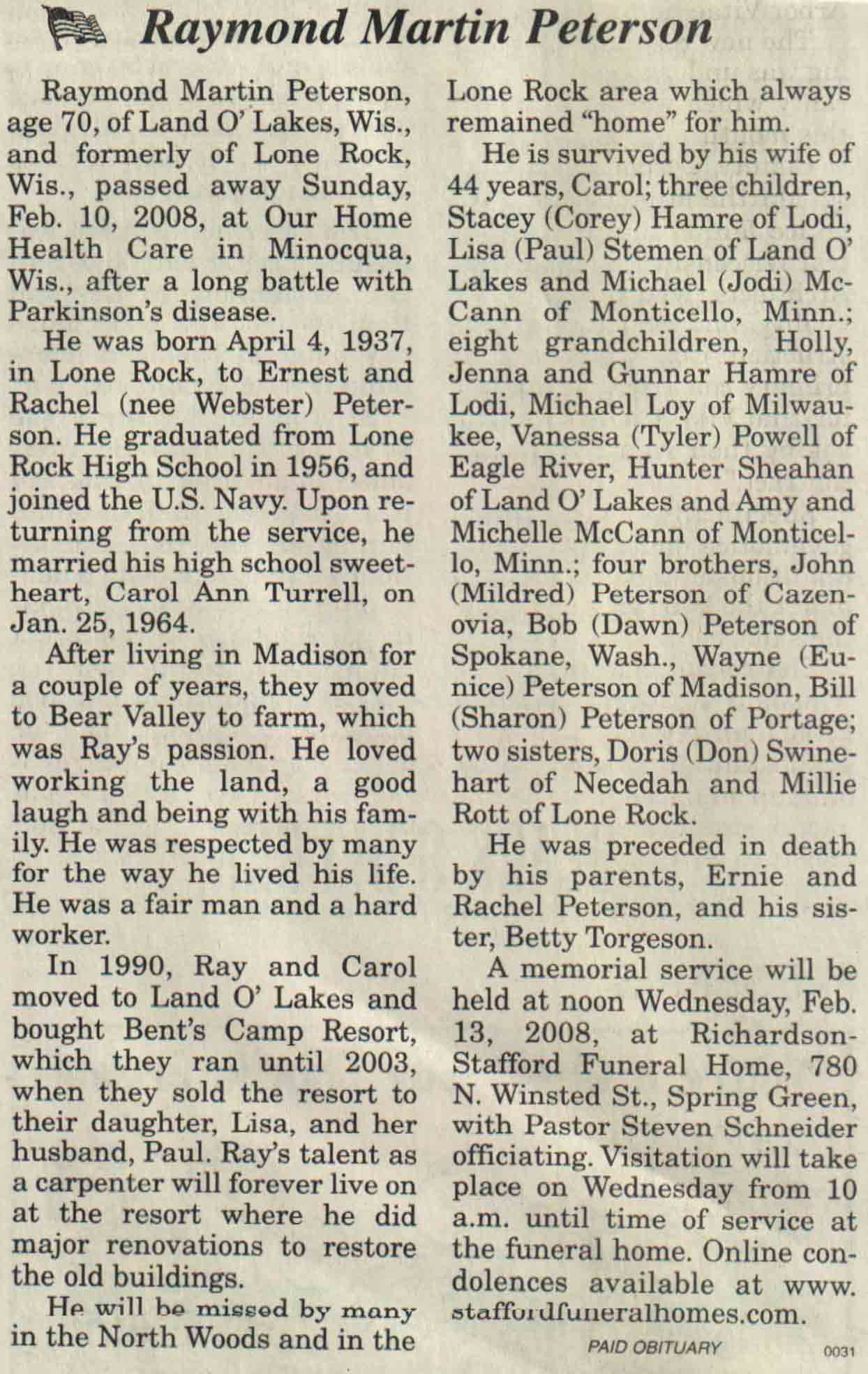 | Reinke | Robert S | 06 Feb 1942 | 17 Mar 2008 | V N-R | 19 Mar 2008 | 4 |