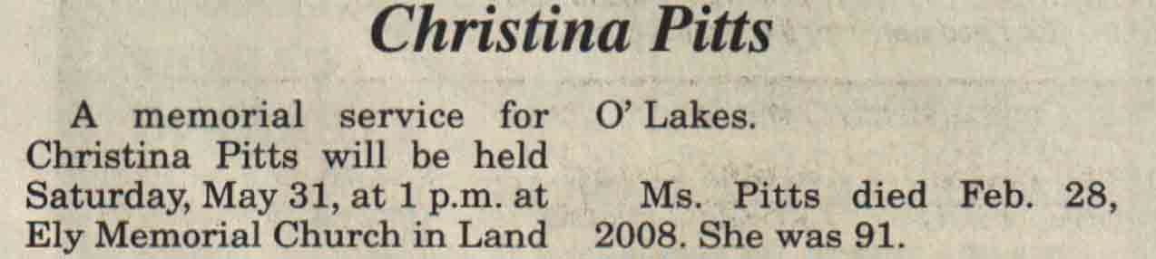| Christensen | Elly R | 09 Jul 1906 | 07 Oct 2008 | V N-R | 15 Oct 2008 | 4A |