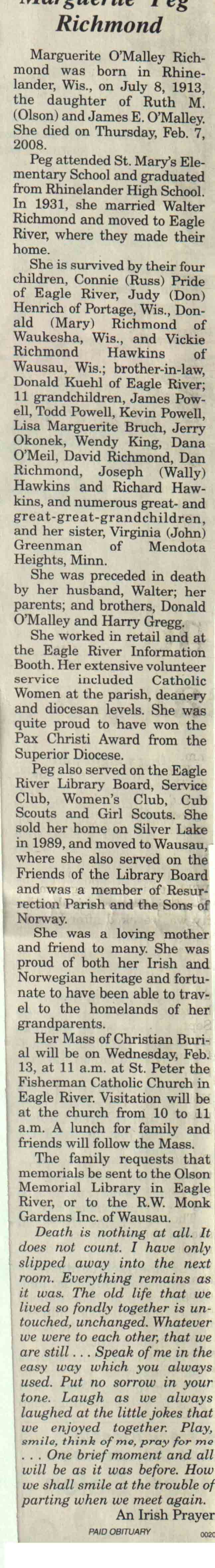 | Richmond | Marguerite (O'Malley) | 08 Jul 1913 | 07 Feb 2008 | V N-R | 13 Feb 2008 | 4A |