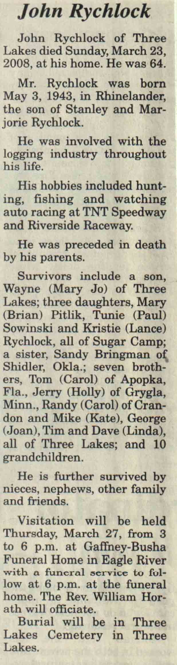 | Rychlock | John | 03 May 1943 | 23 Mar 2008 | V N-R | 26 Mar 2008 | 4A |