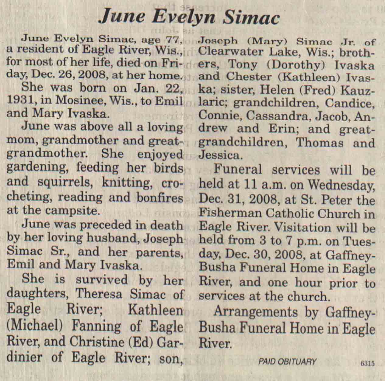 | Simac | June Evelyn (Ivaska) | 22 Jan 1931 | 26 Dec 2008 | V N-R | 31 Dec 2008 | 4 |