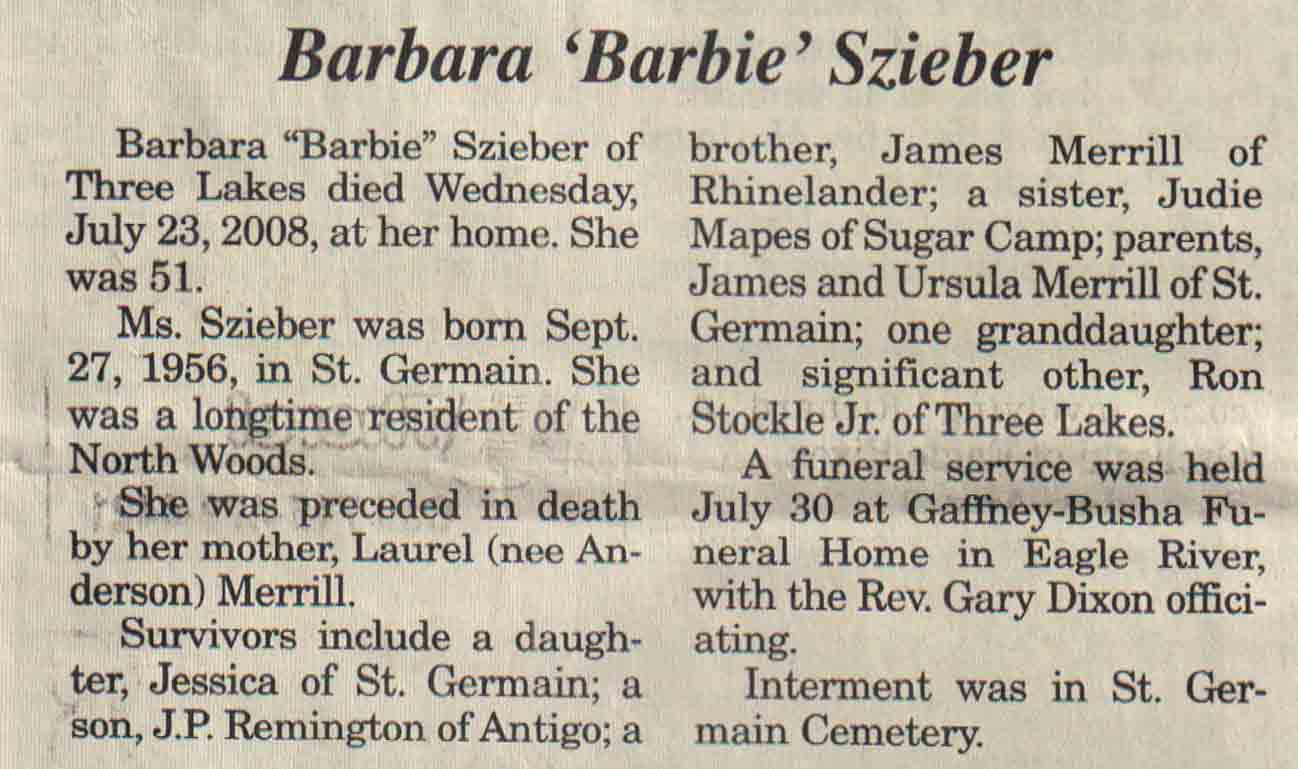 | Szieber | Barbara 'Barbie' (Merrill) | 27 Sep 1956 | 23 Jul 2008 | V N-R | 13 Aug 2008 | 4A |