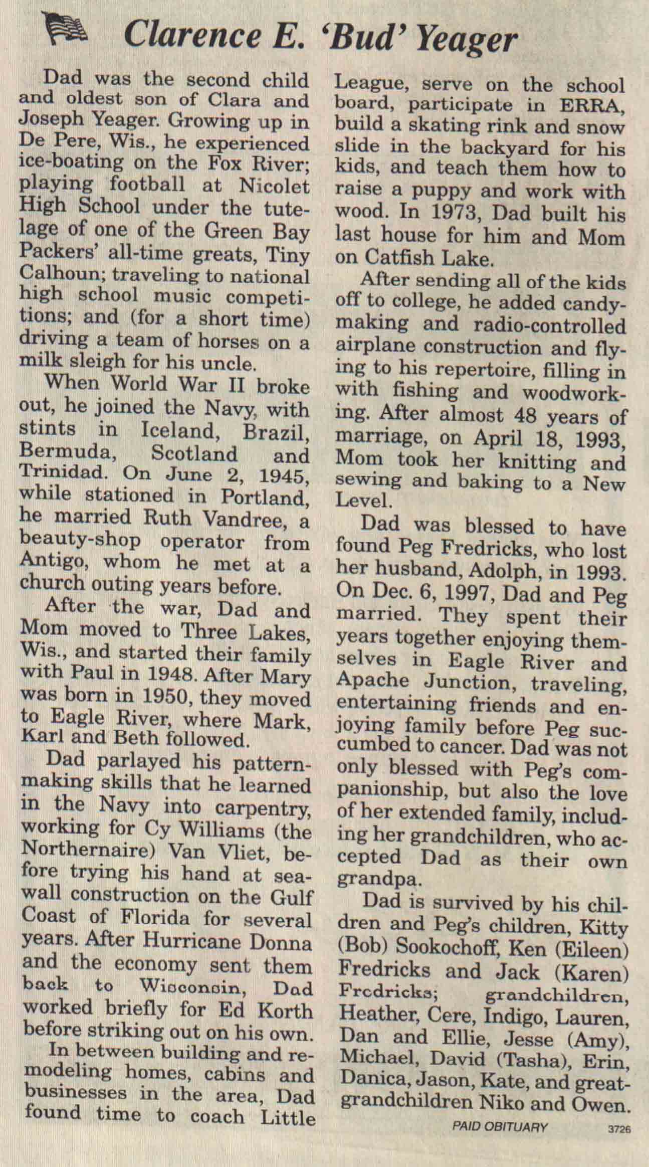 | Yeager | Clarence 'Bud' | Sep 2008 | V N-R | 24 Sep 2008 | 4A | |