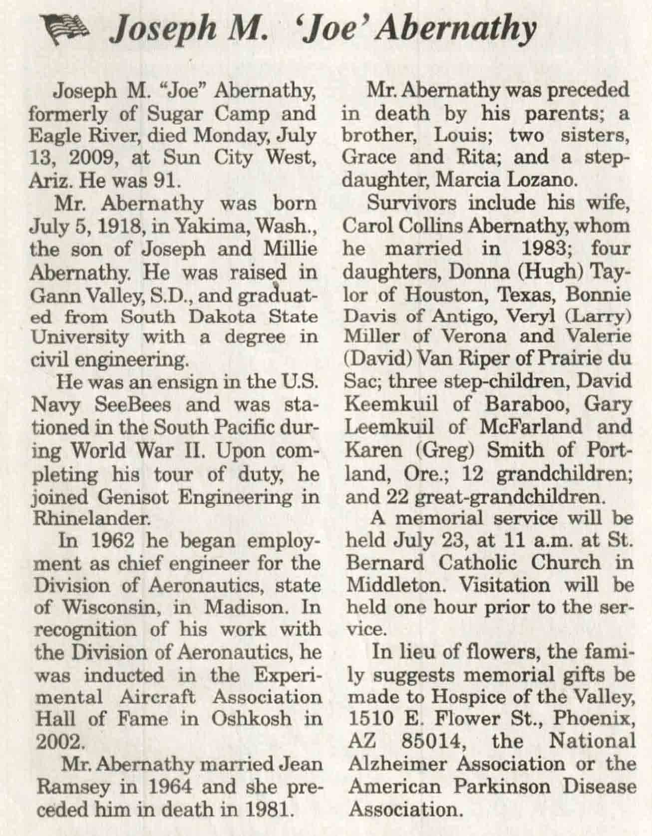 | Abernathy | Joseph M 'Joe' | 05 Jul 1918 | 13 Jul 2009 | V N-R | 22 Jul 2009 | 4A |