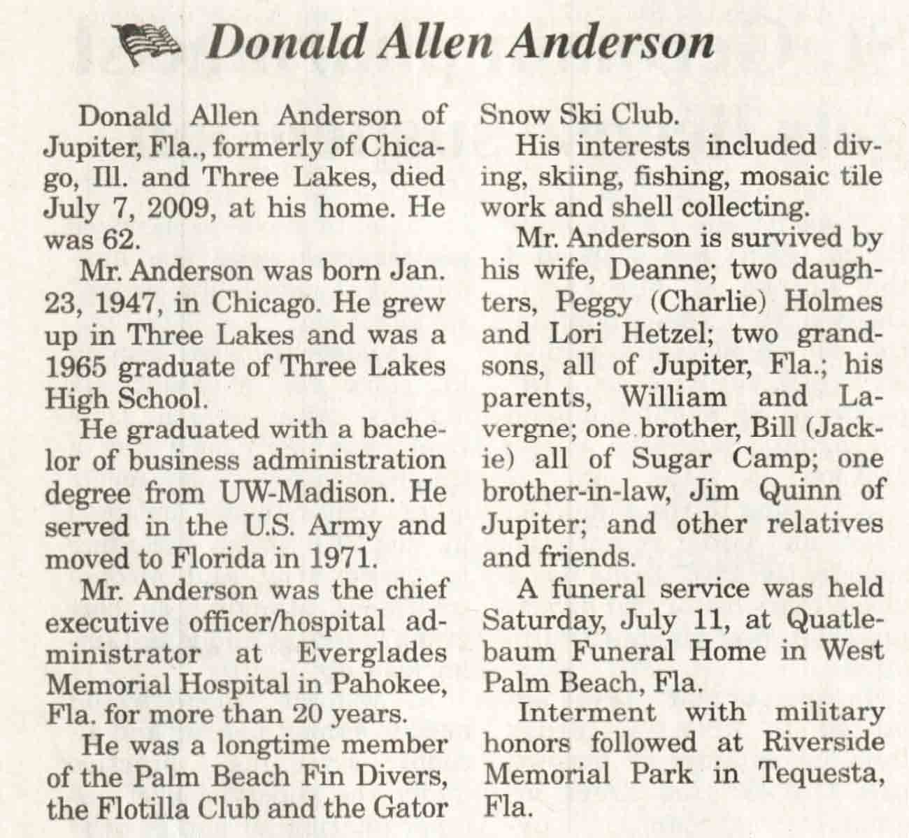 | Anderson | Donald Allen | 23 Jan 1947 | 07 Jul 2009 | V N-R | 15 Jul 2009 | 4A |
