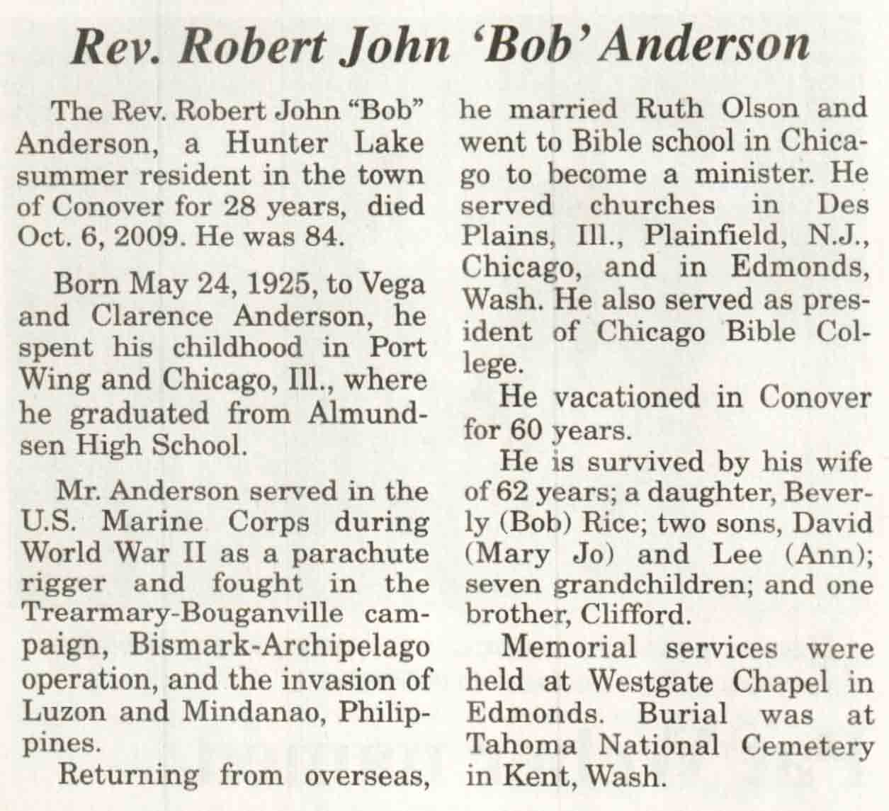| Anderson | Robert John 'Bob', Rev | 24 May 1925 | 06 Oct 2009 | V N-R | 16 Dec 2009 | 4A |