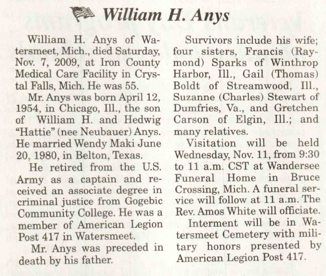 | Anys | William H | 12 Apr 1954 | 07 Nov 2009 | V N-R | 11 Nov 2009 | 4A |