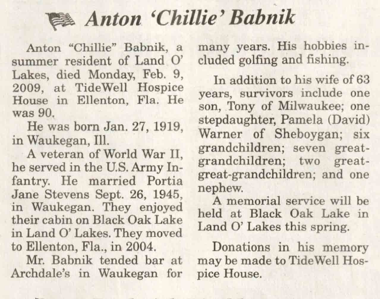 | Babnik | Anton 'Chillie' | 27 Jan 1919 | 09 Feb 2009 | V N-R | 18 Feb 2009 | 4A |