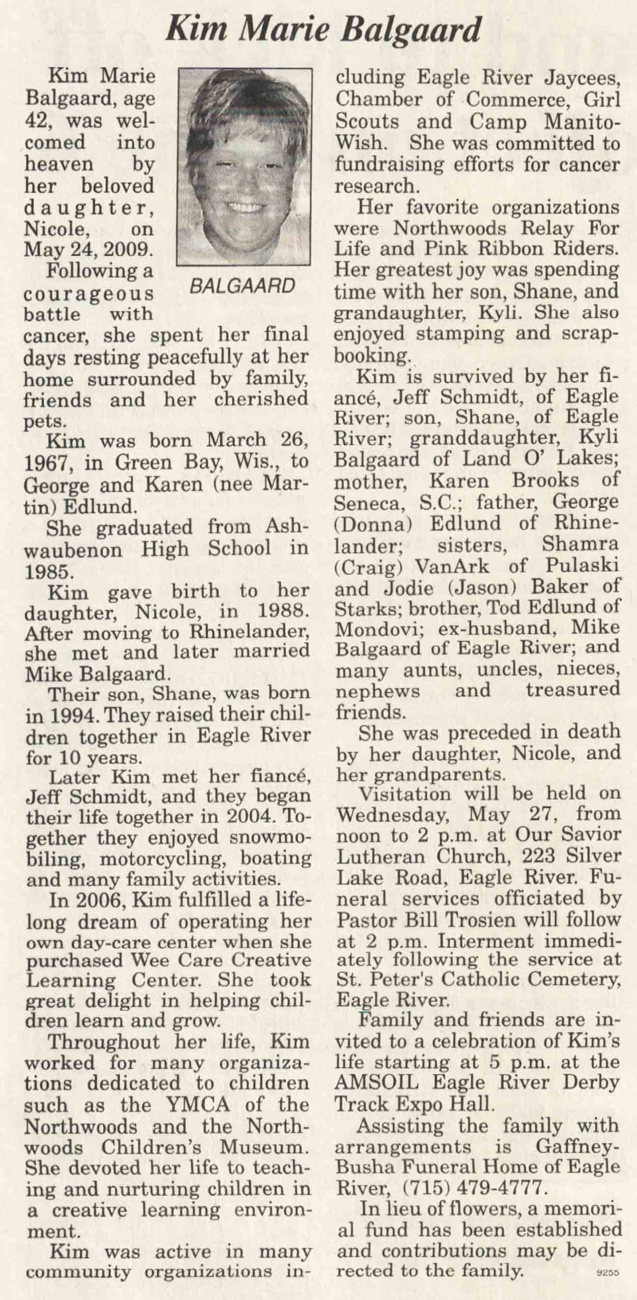 | Balgaard | Kim Marie (Edlund) | 26 Mar 1967 | 24 May 2009 | V N-R | 27 May 2009 | 4A |