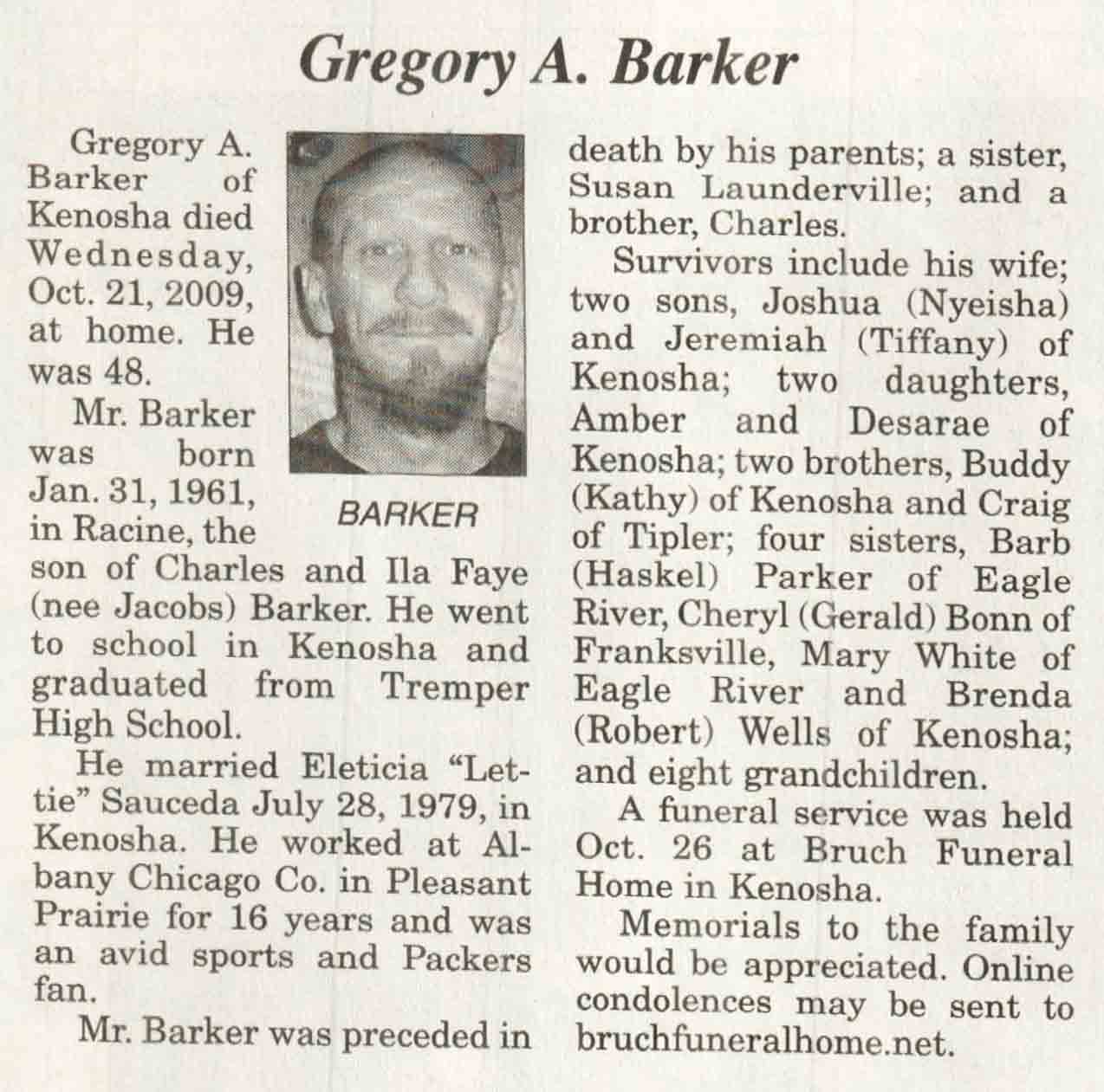 | Barker | Gregory A | 31 Jan 1961 | 21 Oct 2009 | V N-R | 04 Nov 2009 | 4A |