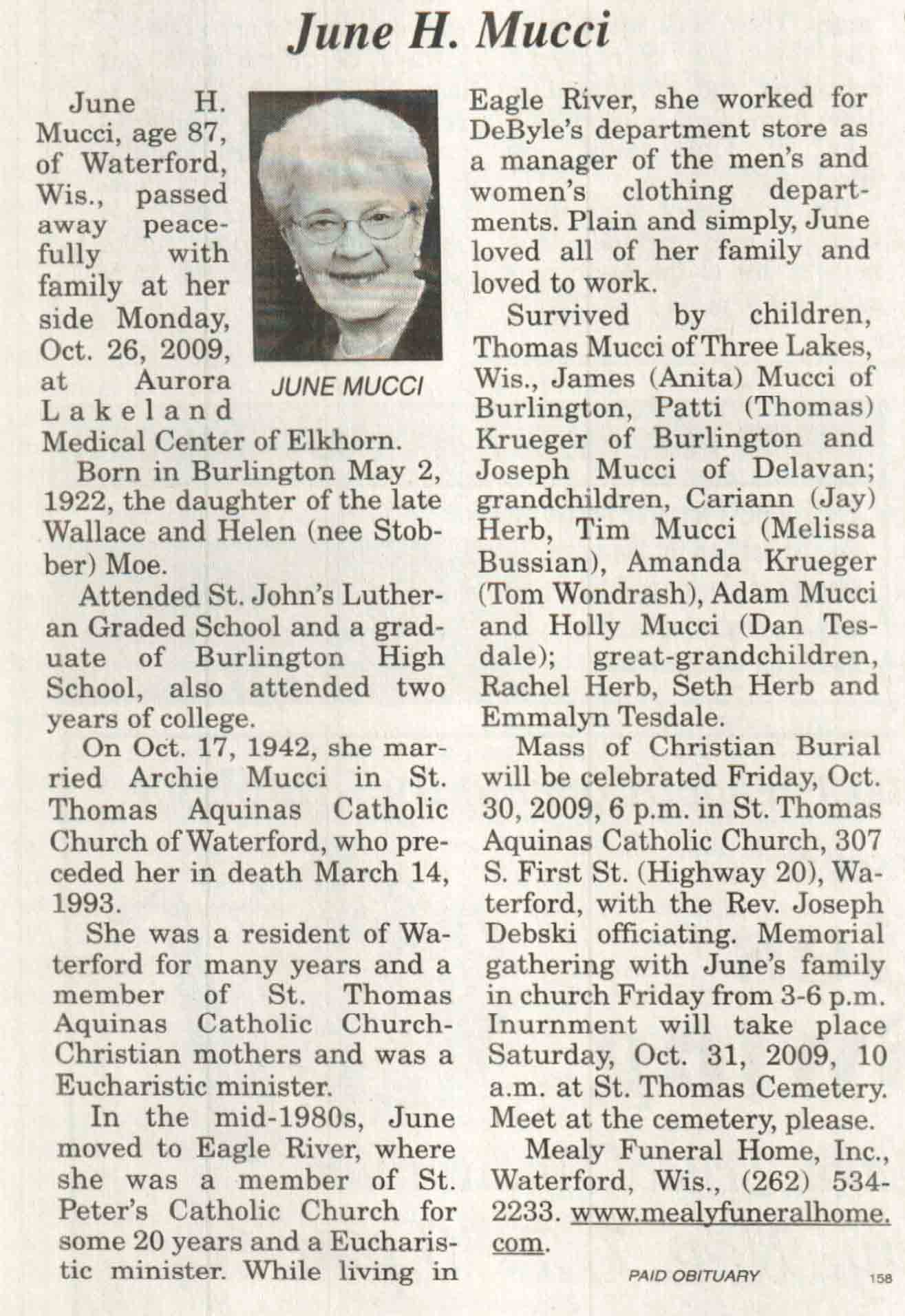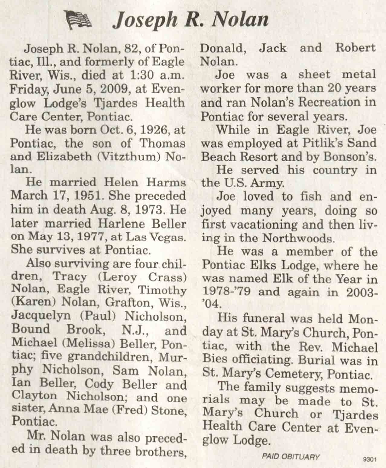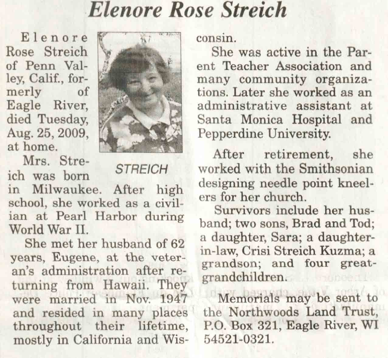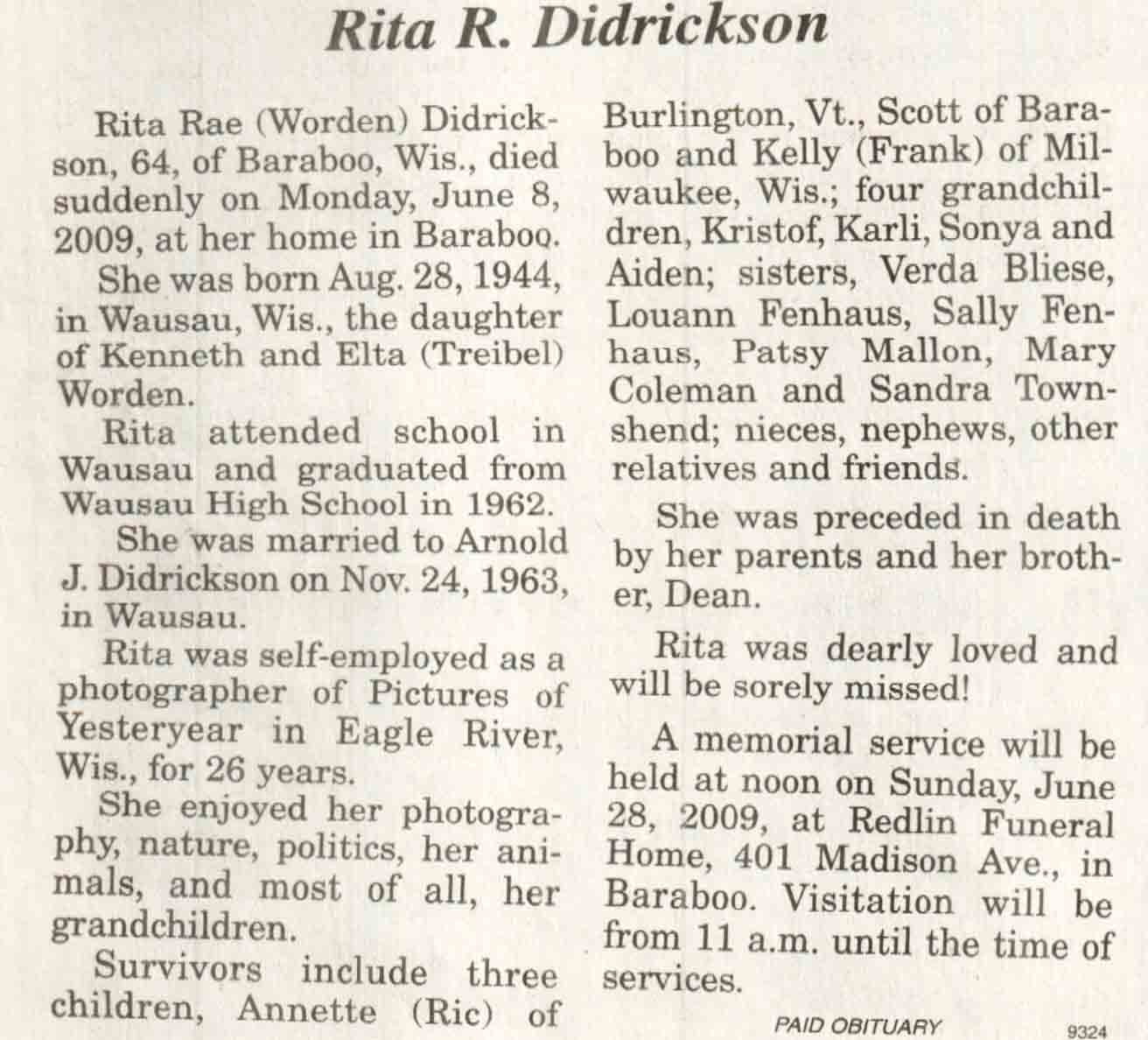 | Didrickson | Rita Rae (Worden) | 28 Aug 1944 | 08 Jun 2009 | V N-R | 17 Jun 2009 | 4A |