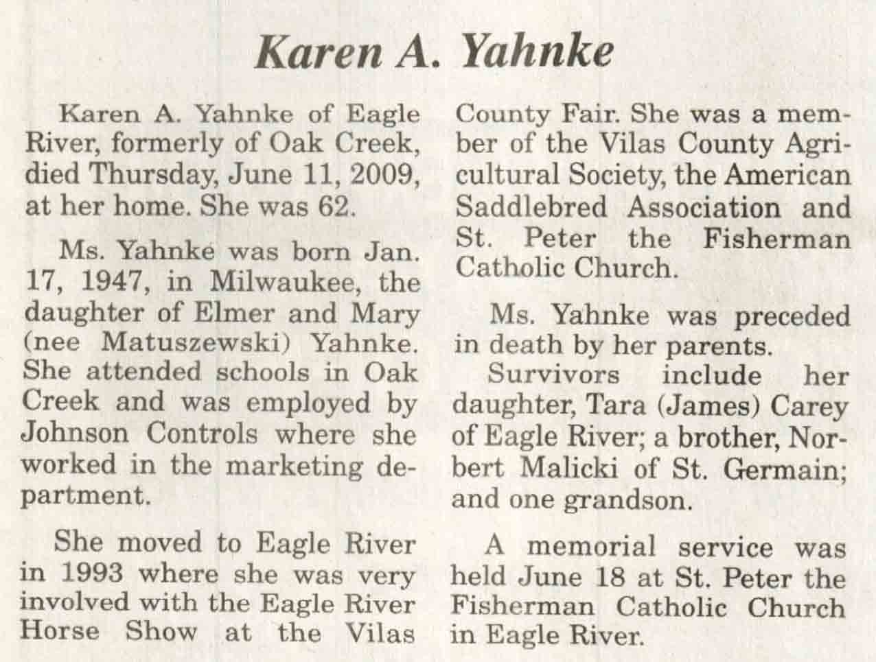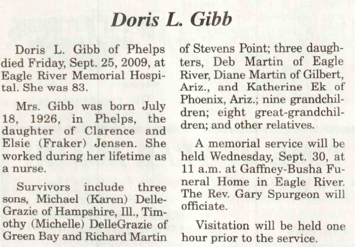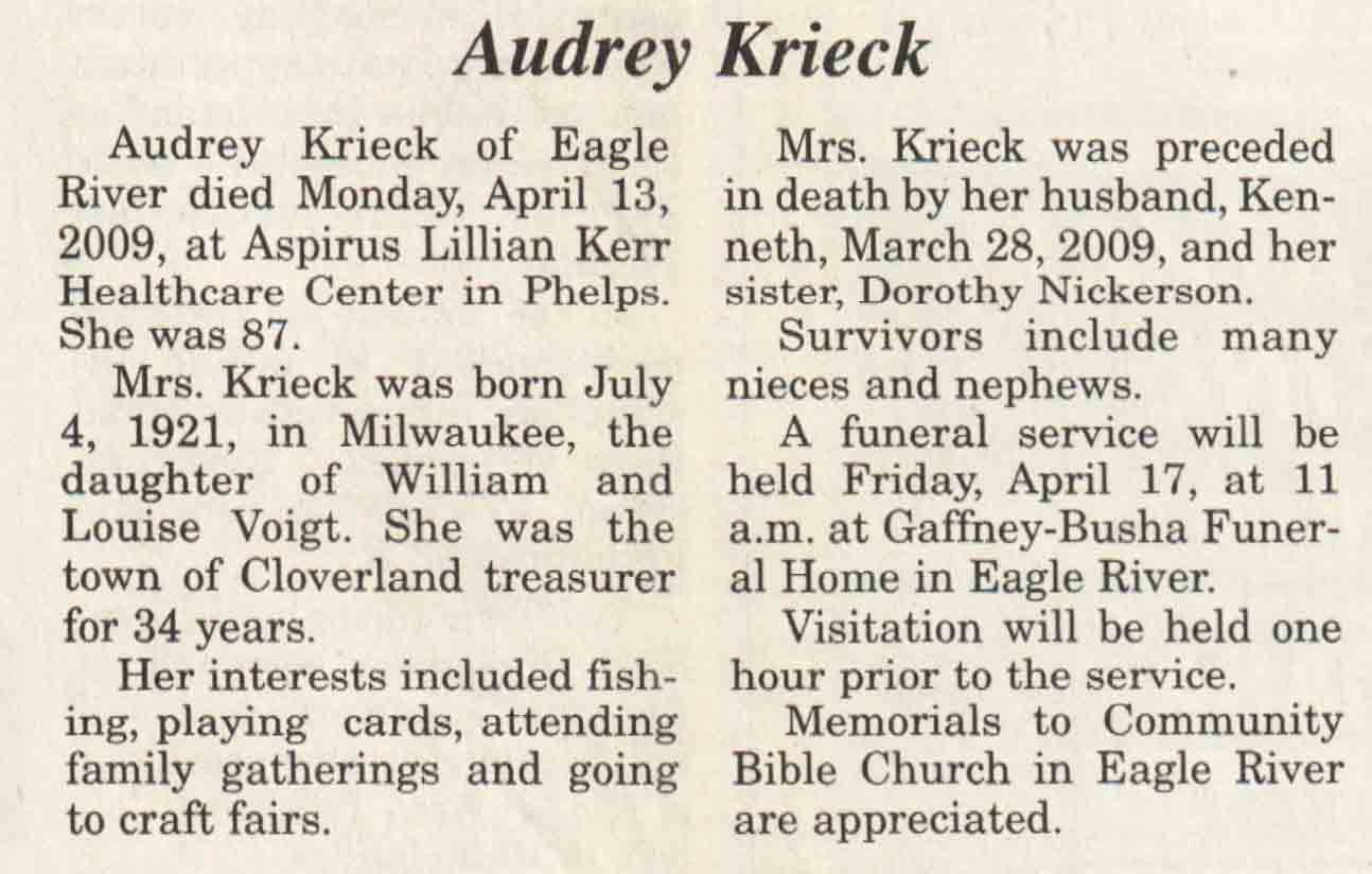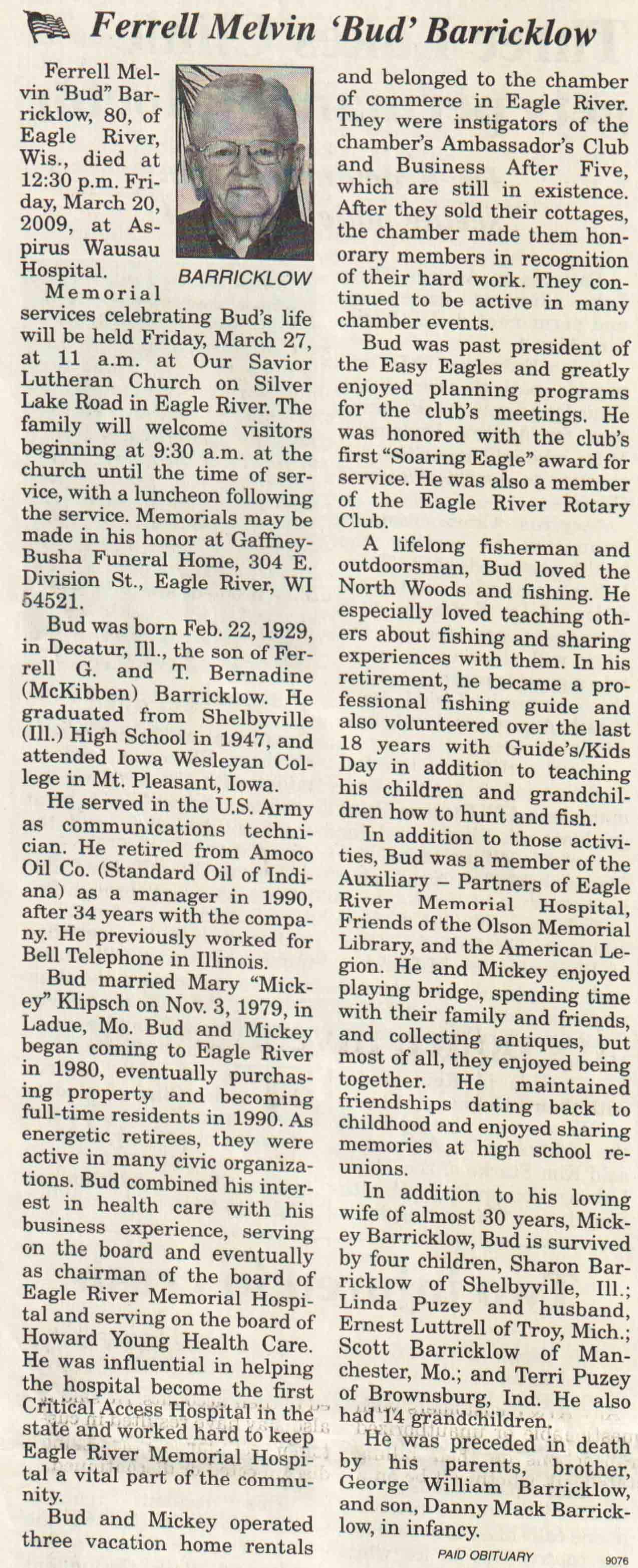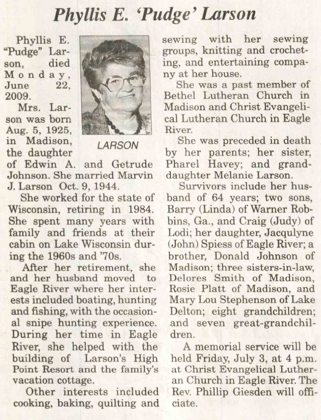 | Didrickson | Rita Rae (Worden) | 28 Aug 1944 | 08 Jun 2009 | V N-R | 17 Jun 2009 | 4A |