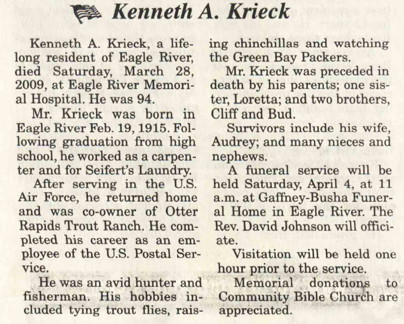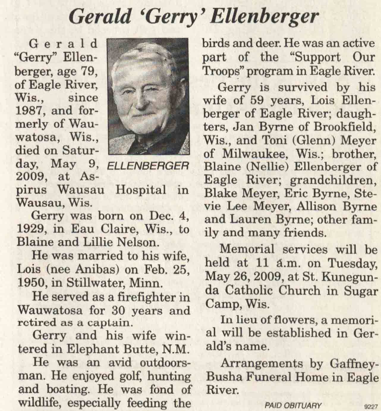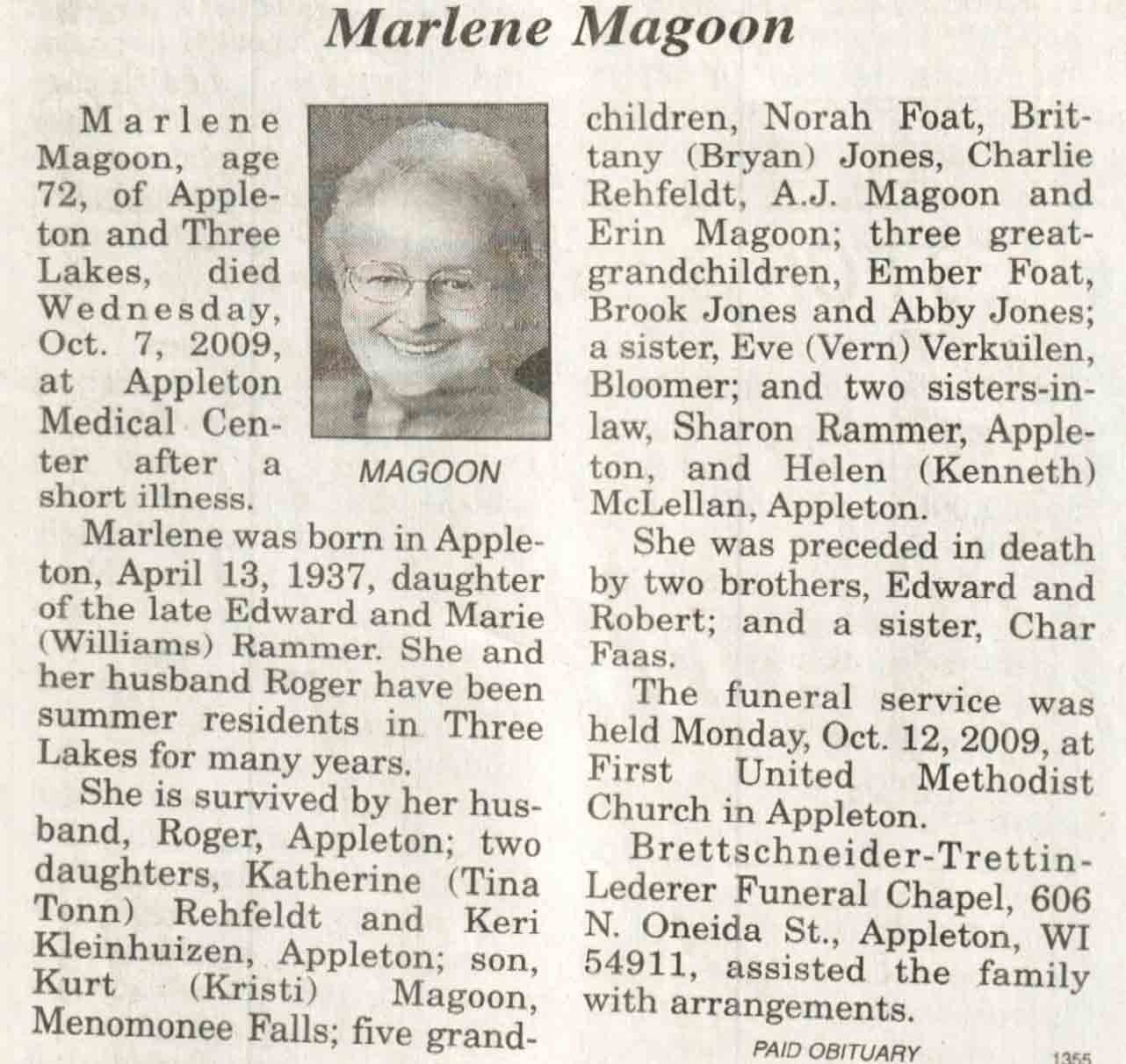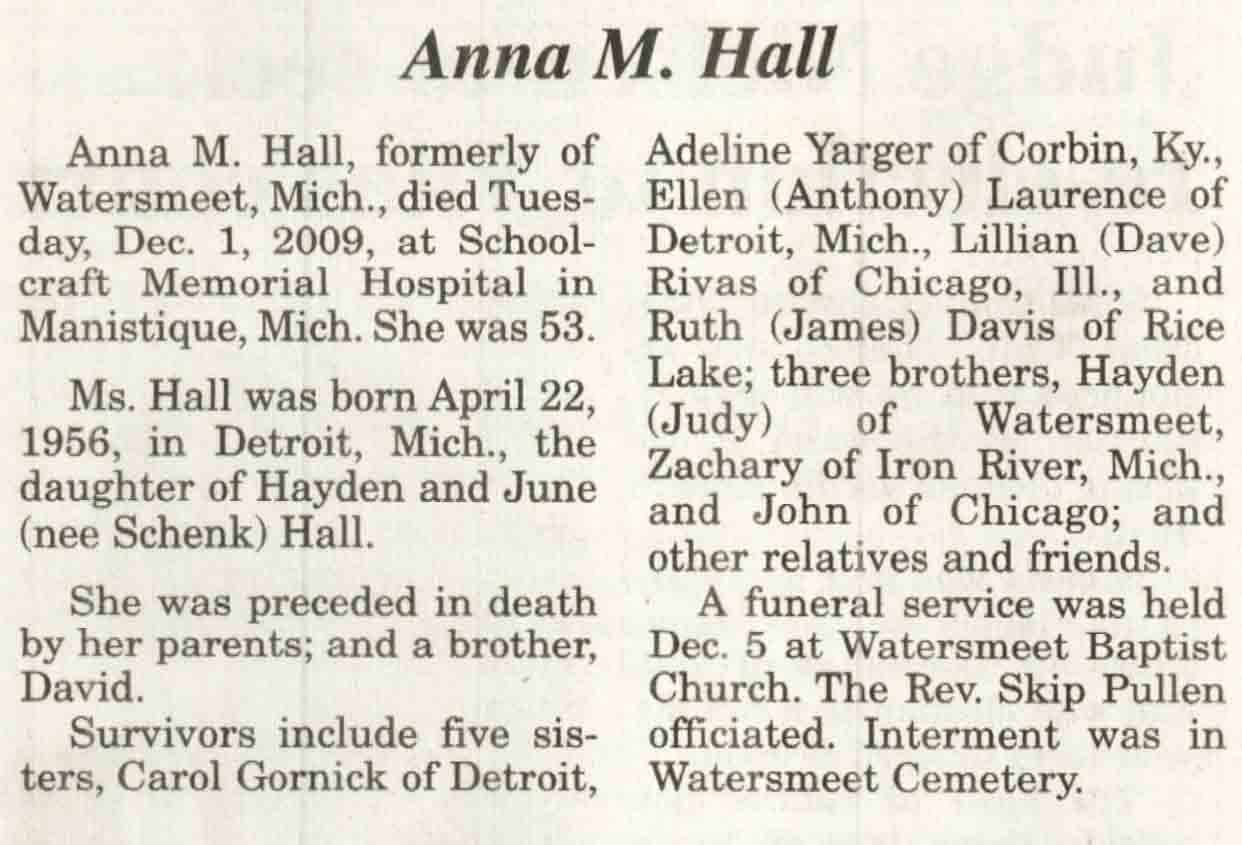 | Didrickson | Rita Rae (Worden) | 28 Aug 1944 | 08 Jun 2009 | V N-R | 17 Jun 2009 | 4A |
