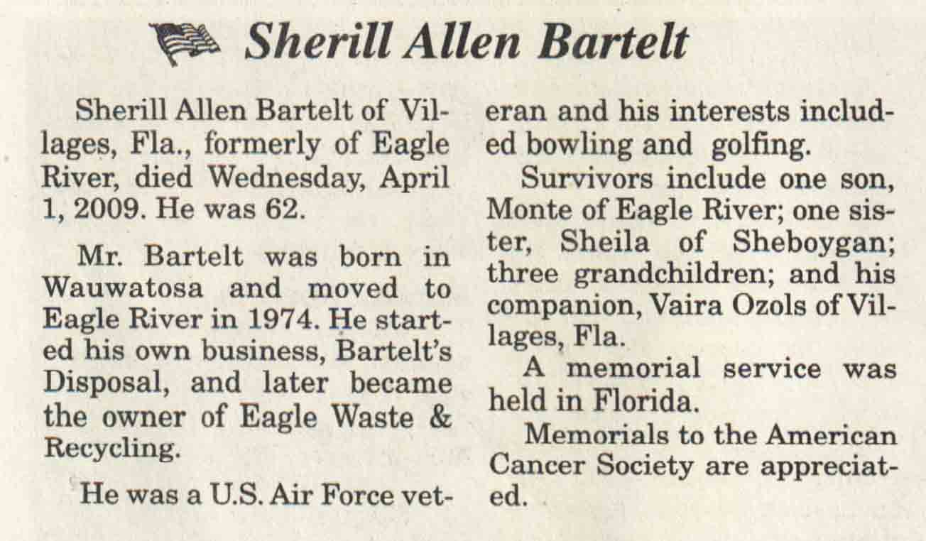 | Bartelt | Sherill Allen | c 1947 | 01 Apr 2009 | V N-R | 22 Apr 2009 | 4 |