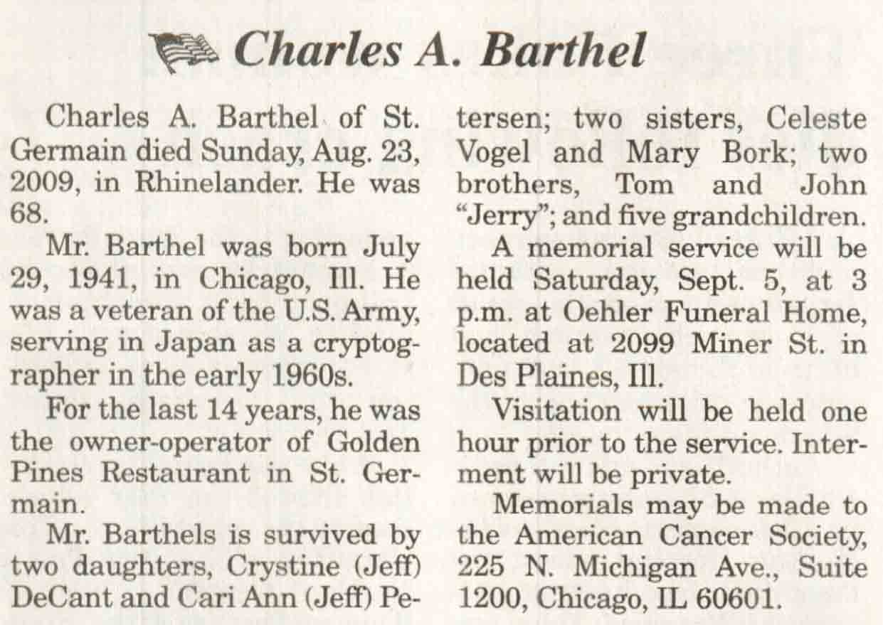 | Barthel | Charles A | 29 Jul 1941 | 23 Aug 2009 | V N-R | 02 Sep 2009 | 4A |