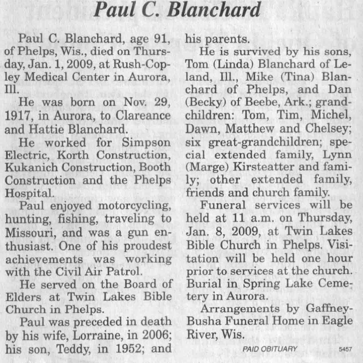 | Blanchard | Paul C | 29 Nov 1917 | 01 Jan 2009 | V N-R | 07 Jan 2009 | 4 |